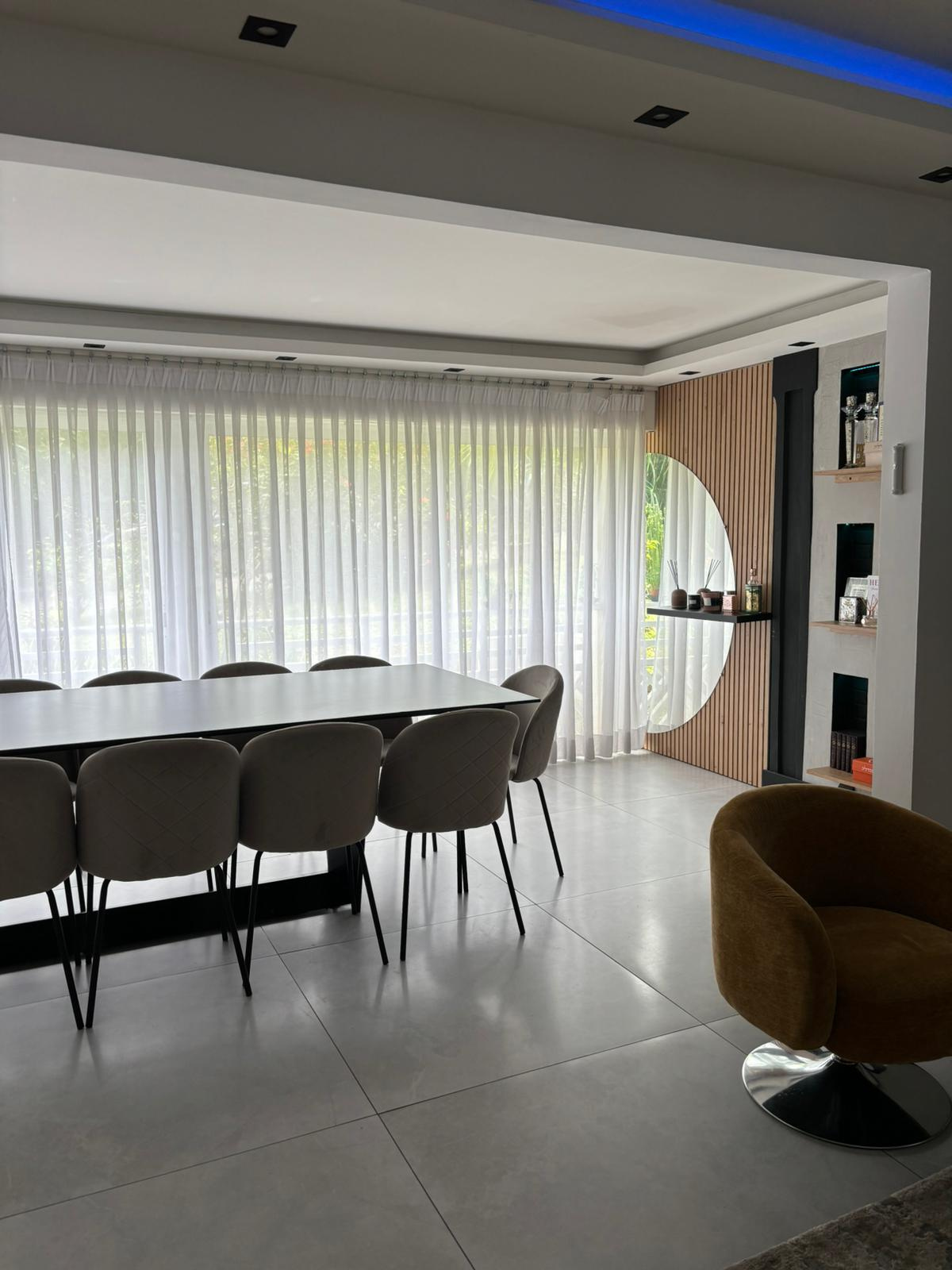 Il se compose d'une entrée, d'une grande cuisine ouverte entiérement équipée, d'une salle à manger, d'un séjour , de deux chambres, d'une salle de bain avec WC, d'une buanderie avec citerne.