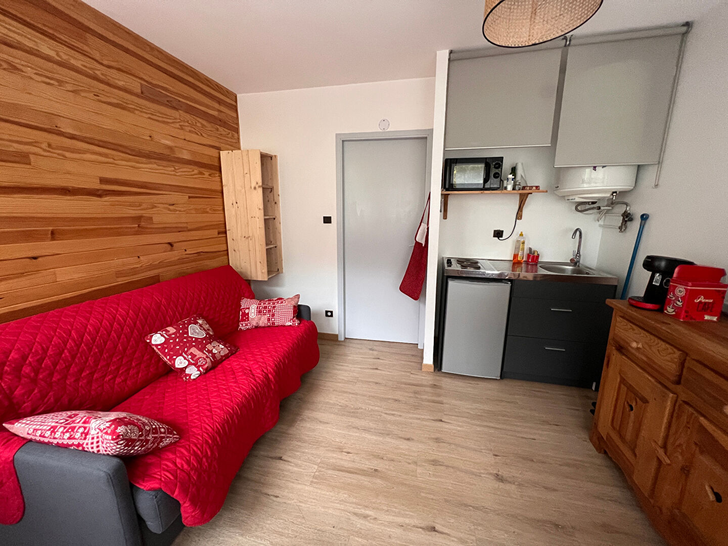 Il se compose d'un coin montagne avec lits superposés, d'une salle d'eau, d'un WC séparé, et d'un séjour cocooning avec kitchenette.