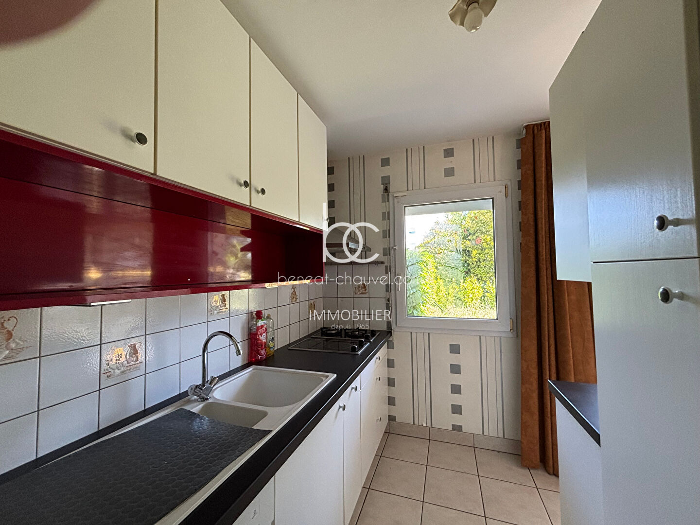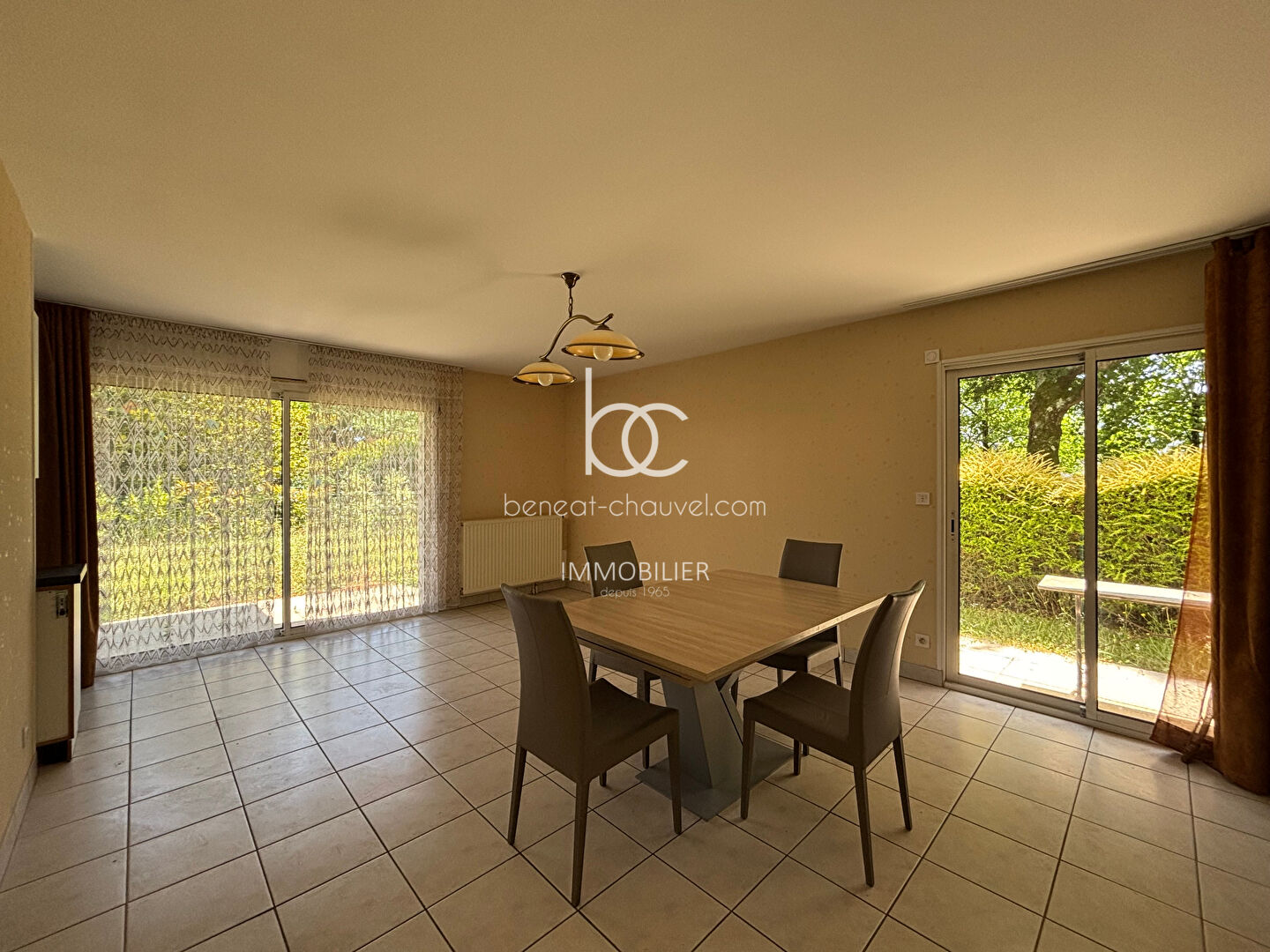 Hall, séjour-salon donnant sur terrasse et jardin privatif, cuisine équipée, 3 chambres, salle de bains, wc.