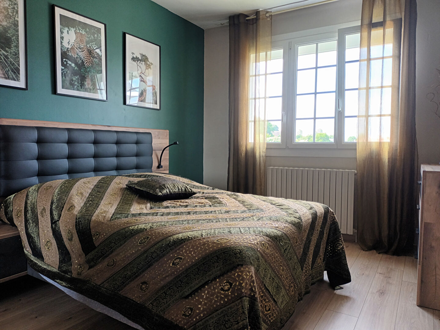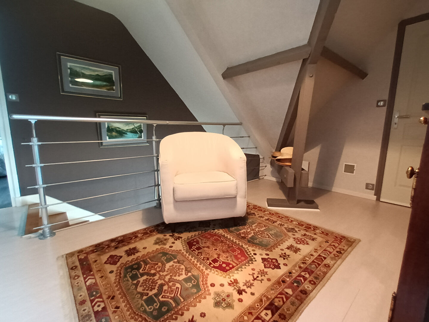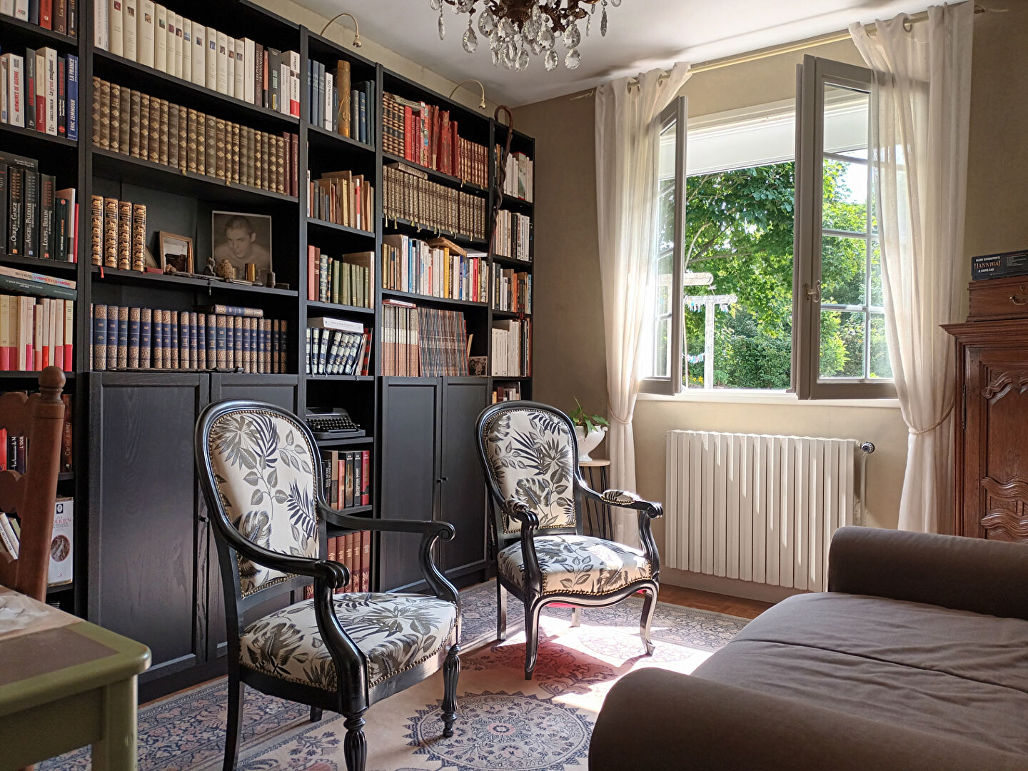 avec cheminée insert, dégagement desservant deux chambres, bureau, salle d'eau avec douche à l'italienne, wc avec lave-mains