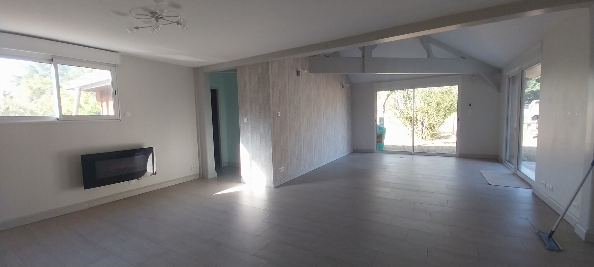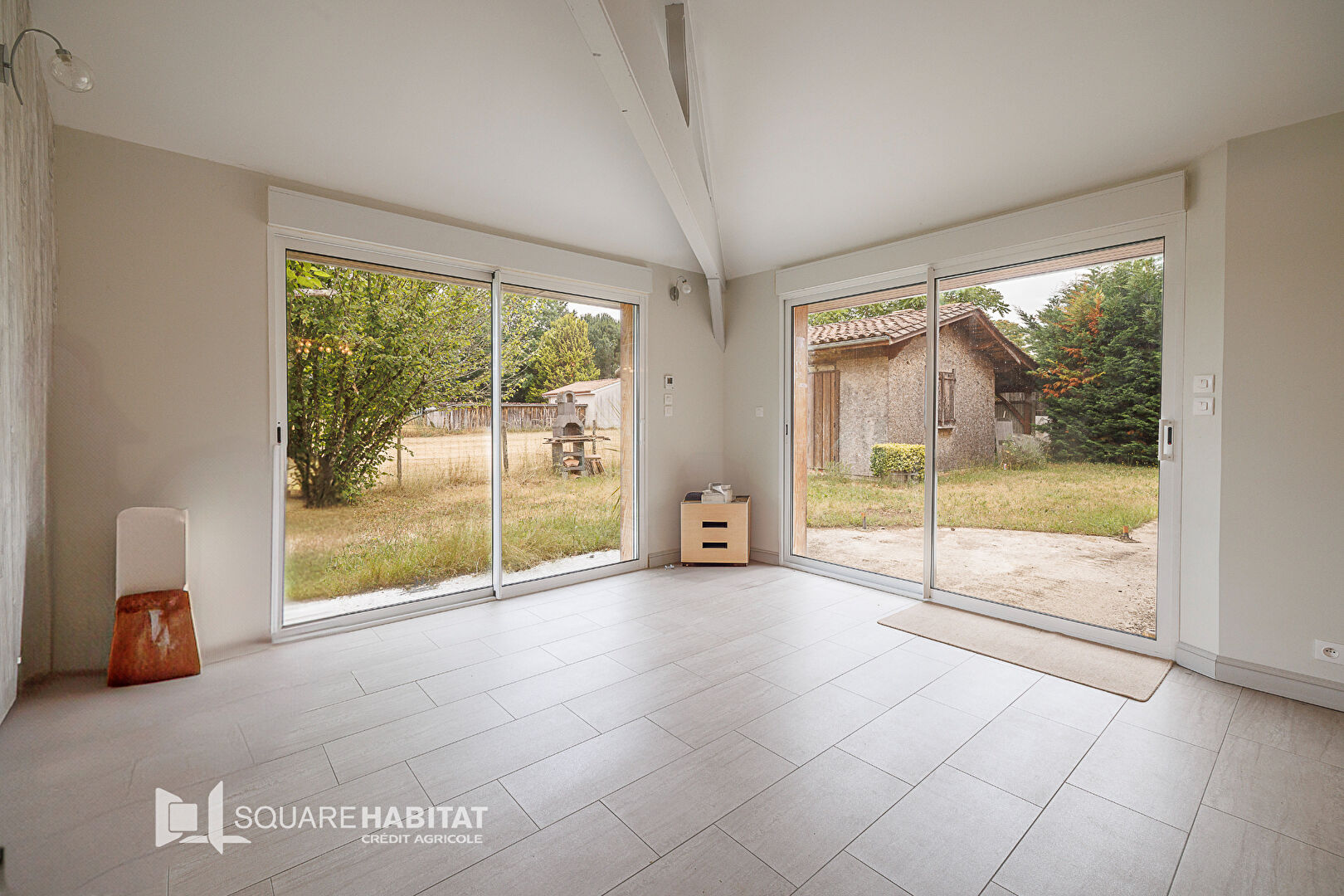 Entre St Denis de Pile et Coutras, jolie maison ossature bois disposant d'un grand séjour lumineux, de 3 chmabres dont une suite parentale et un bureau.