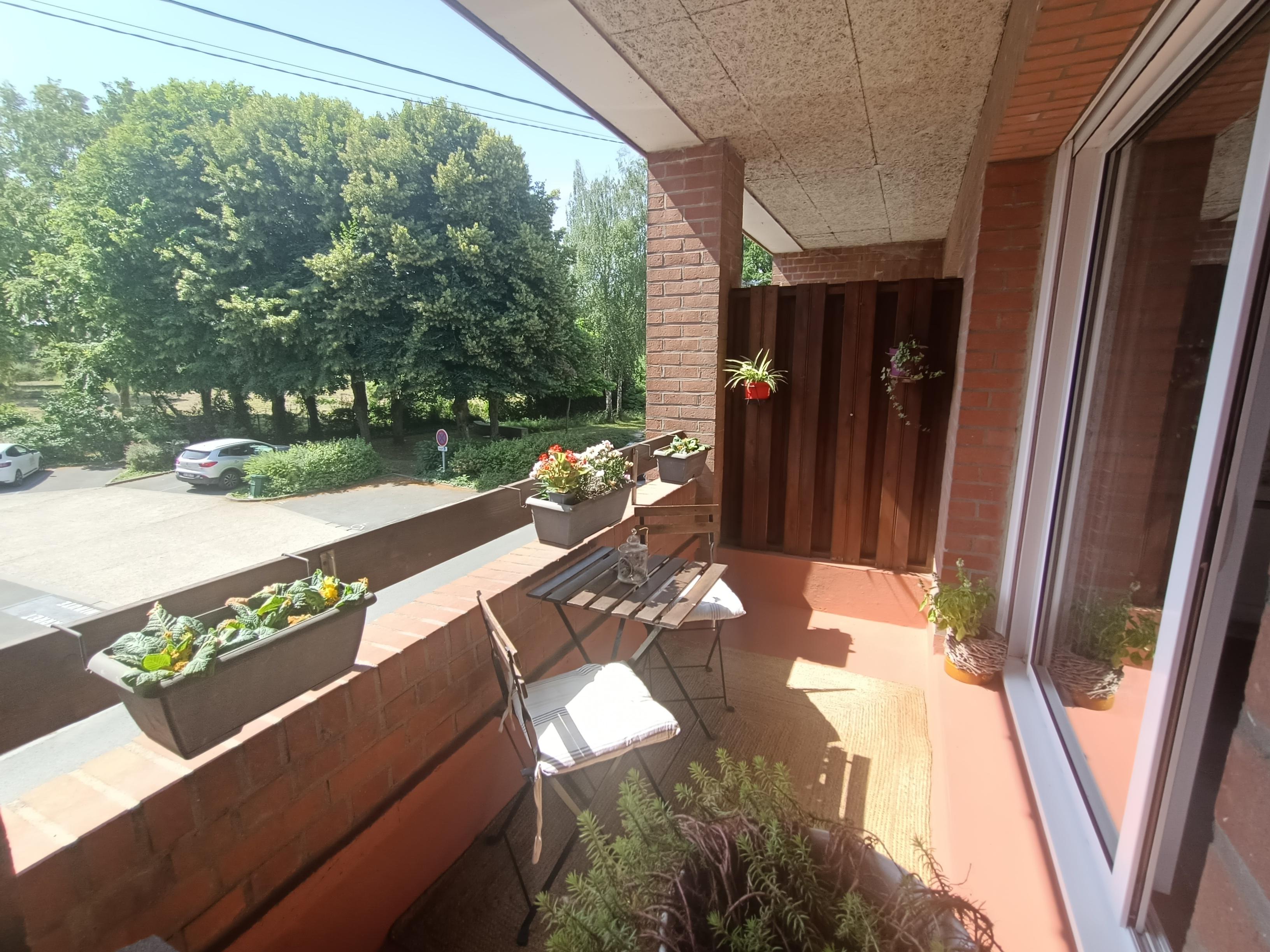 Agréable balcon sud avec vue dégagée + jardin de ville .