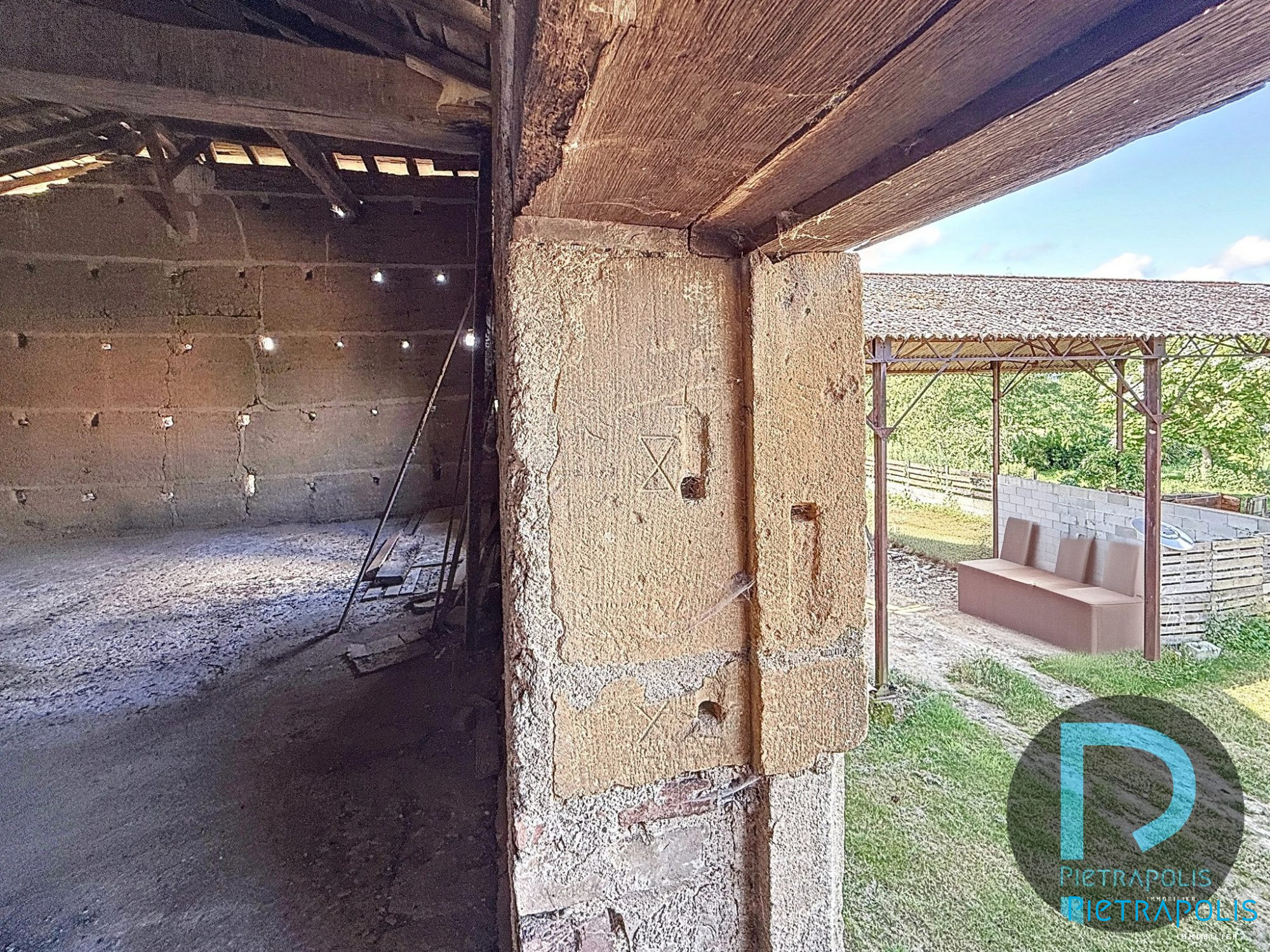 Elle se compose de deux niveaux soit 55m² par niveau (de beaux volumes et belles hauteurs sous plafonds) avec hangar métallique attenant, le tout sur un terrain d'environ 1300 m².