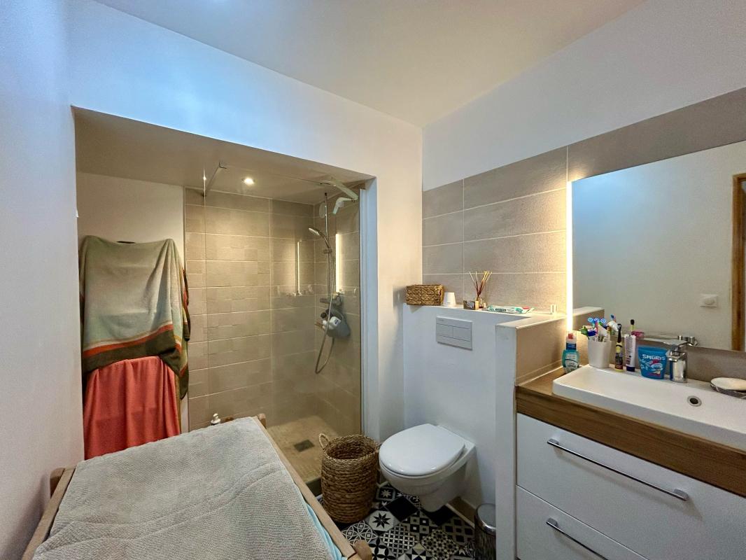 Vous profiterez d'une cuisine ouverte sur l'extérieur entièrement équipée, d'une pièce à vivre, 2 chambres dont un bureau, salle d'eau avec wc.