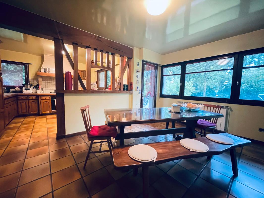 Au rez-de-chaussée, vous retrouverez une entrée accueillante, un salon lumineux avec insert bois, coin bibliothèque / bureau attenant, une cuisine semi-ouverte sur la salle à manger, une suite parentale avec sa salle d'eau privative et des WC indépendants