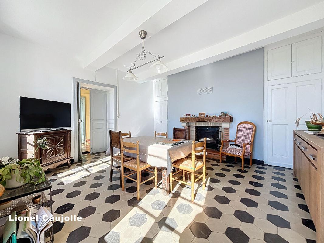 La SALLE A MANGER avec carreaux ciments, insert, puis la CUISINE.
