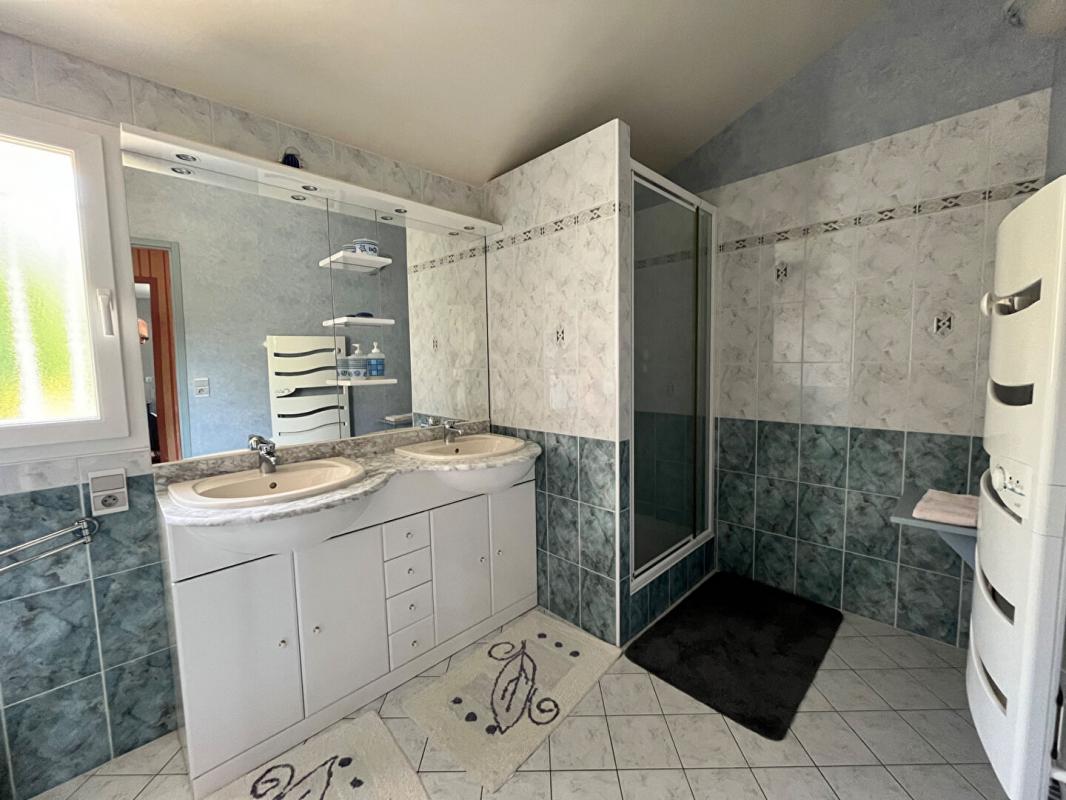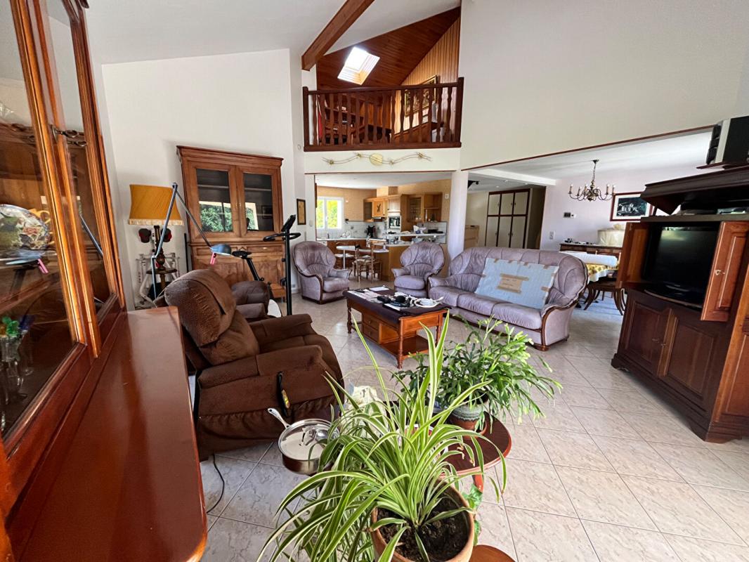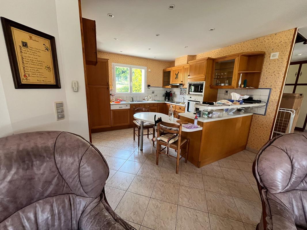 Elle se compose en rez-de-chaussée d'une entrée qui donne sur une cuisine américaine dont la pièce de vie s'ouvre sur une terrasse exposée Sud, cette même entrée dessert un couloir donnant sur 3 Chambres dont 2 avec placards, une salle de bain avec douche ,un WC indépendant avec lave-mains et une buanderie .a l'étage un pallier avec placards donne sur une mezzanine et son grenier. Se trouvent également 2 chambres dont une avec placards, une salle d'eau, un WC. Du cellier un escalier nous mènent à un sous-sol complet composé d'un double garage avec point d'eau, d'une pièce multifonction ,d' une cave ,d' une salle d'eau avec WC et d' un grand atelier (environ 50 m2. Ce bien allie confort et potentiel d'optimisation énergétique grâce à plusieurs panneaux photovoltaiques . Parfait pour une famille souhaitant s'installer dans un cadre verdoyant sans être isolée. DPE C 134kw/m2 et GES A 58kw/an Montant estimé des dépenses annuelles d'énergie pour un usage standard entre 1830E et 2520 euros indexées aux années 2021,2022 et 2023. Prix 329000 euros.