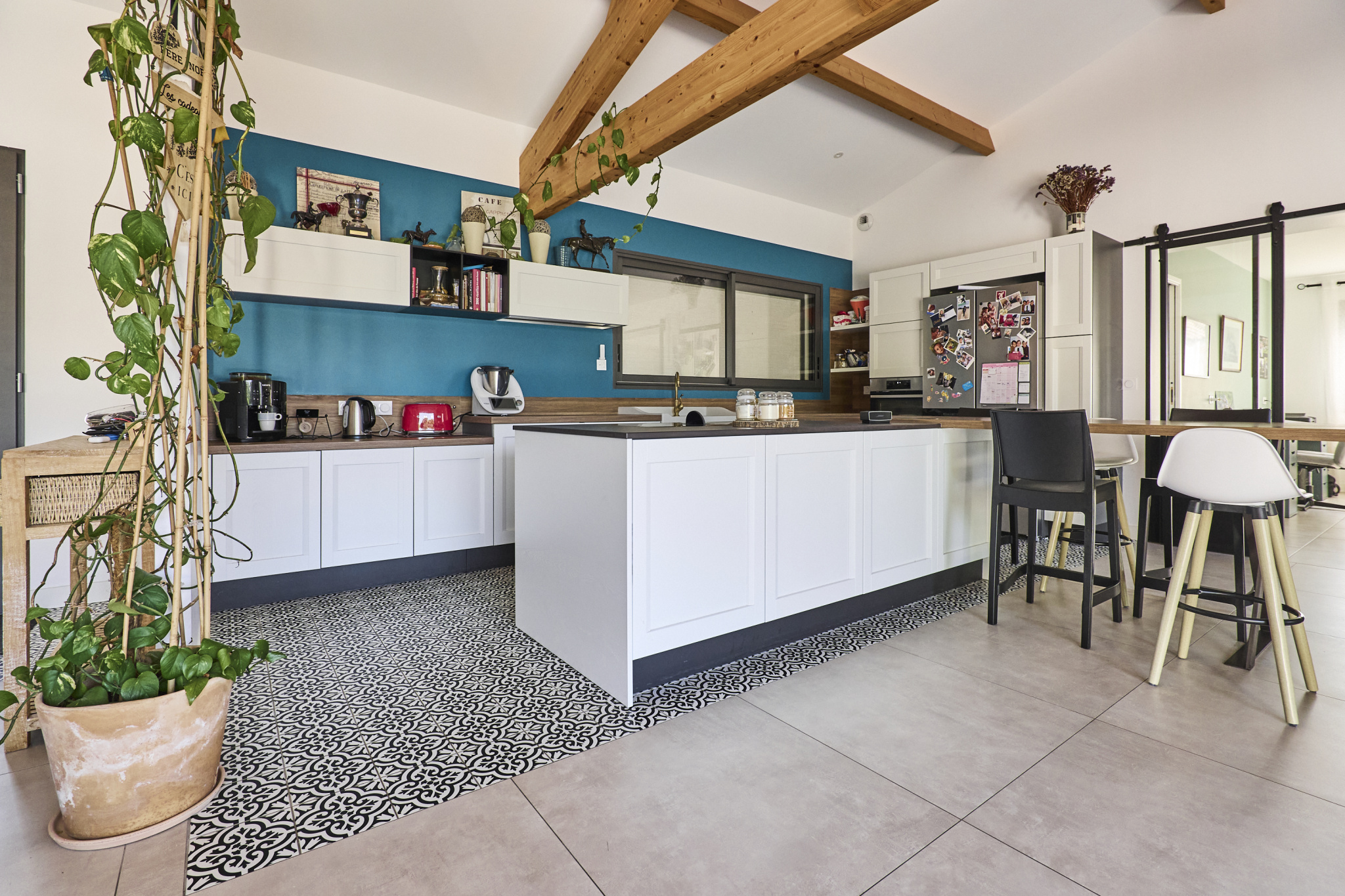 Dès l'entrée, vous serez charmé par la pièce de vie baignée de lumière naturelle grâce à son plafond cathédrale et ses larges ouvertures sur l'extérieur. D'une surface d'environ 70 m2, cet espace s'ouvre sur une vaste terrasse surélevée offrant une vue dégagée sur le jardin paysager et la piscine 8x4 avec son dôme coulissant téléscopique, idéale pour en profiter pleinement toute l'année.