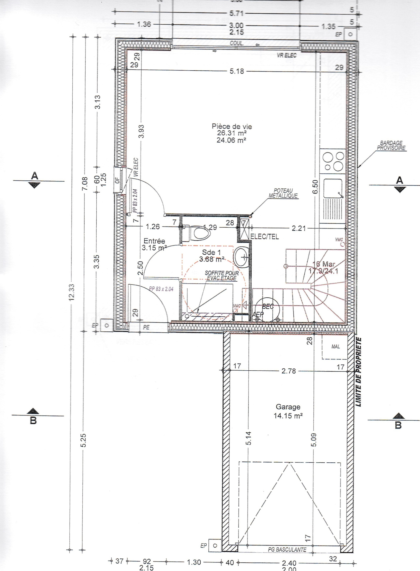 Jardin, garage et place de parking.
