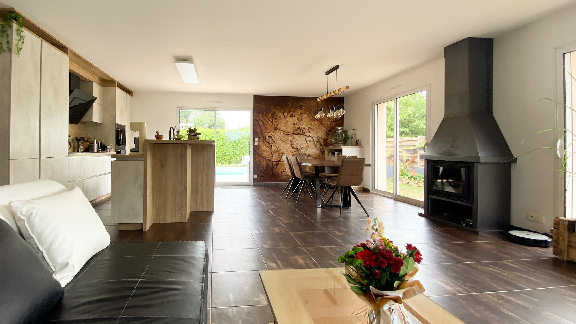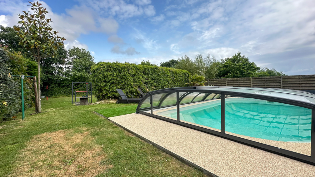 Découvrez cette maison de plain-pied de 153 m2, alliant espace et confort. Elle se compose de : - 4 chambres (avec placard intégrés) dont une suite parentale avec dressing sur mesure et salle d'eau privative, - Une salle de bains avec équipements modernes, - Une grande pièce de vie lumineuse de plus de 50m2 avec salon séjour et cuisine ouverte, - Une buanderie et une arrière-cuisine entièrement agencées, Toutes les pièces sont aménagées avec du mobilier intégré de qualité, pensé pour optimiser l'espace et offrir un cadre de vie élégant et fonctionnel. Extérieurs: - Terrasse de 100 m2 idéale pour les repas et moments de détente avec piscine couverte et chauffée (pompe à chaleur). - Un grand terrain de plus de 1000 m2, arboré. - Un Garage (20 m2) + grand appentis (30 m2) pour stationnement ou espace de rangement dans le prolongement de la maison. Économies et écologie : des panneaux solaires assurent un revenu annuel d'environ 2000 EUR, pour un budget énergie optimisé. Les + : - Volumes généreux et agencement intelligent - Proche du centre-ville, des écoles et des commerces - Mobilier intégré - Idéal pour famille, résidence secondaire ou investissement patrimonial Contactez-nous dès maintenant au 06.60.34.44.93 pour visiter cette maison, où tout a été pensé pour votre confort au quotidien. Les informations sur les risques auxquels le bien est exposé sont disponibles sur le site Géorisques. Votre agent commercial Virginie Marteau RSAC La Roche Sur Yon 2018AC00155. Suivez-nous sur notre page Facebook et sur notre site web! A bientôt
