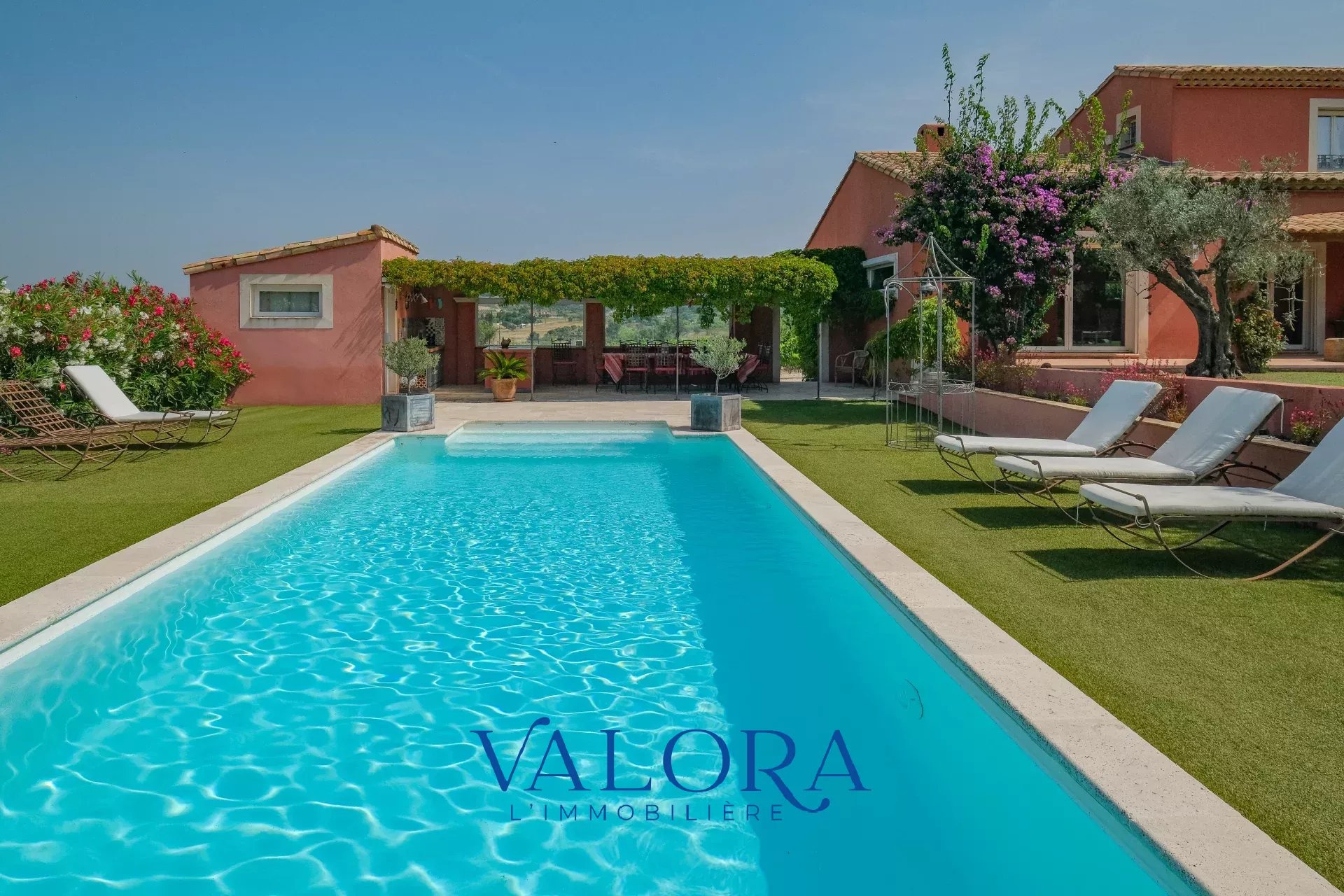 L’extérieur vous séduira tout autant avec son jardin paysager parfaitement entretenu, le coin piscine avec son pool-house et ses nombreux espaces dont vous pourrez bénéficier à tout moment de la journée.