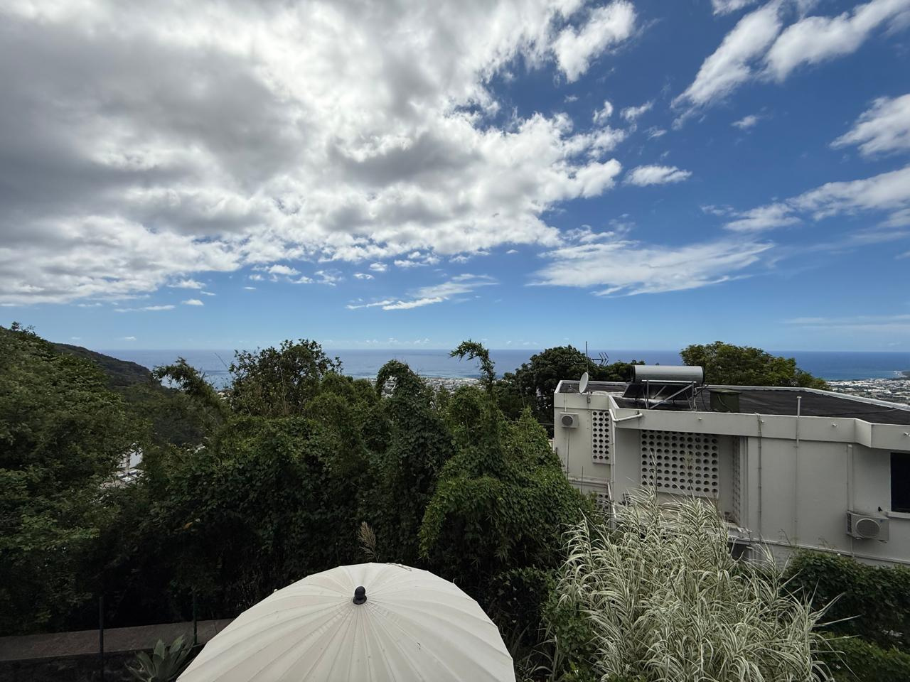Véranda offrant une vue dégagée sur la mer et les environs.