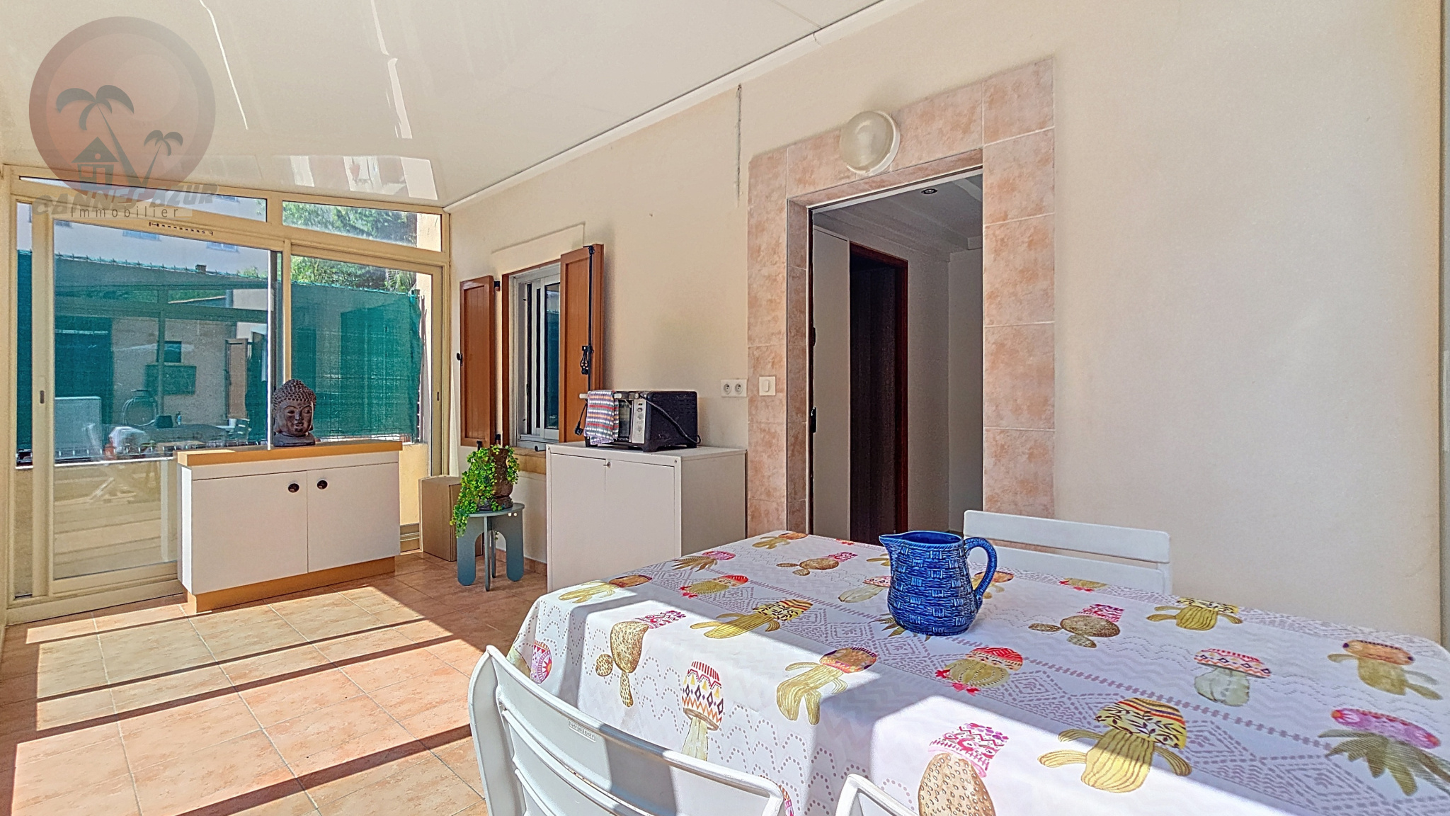 EXCLUSIVITE ! SOUS COMPROMIS DE VENTE - Appartement à vendre à CANNES, 2 pièces de 33,80 m2 LC en bas de villa bénéficiant d'une terrasse de 17,80 m2 et d'une véranda de 11,36 m2. Le bien est composé d'un salon avec cuisine américaine, une chambre, une salle d'eau avec un wc. Climatisation. Pas de charges. Honoraires vendeur. http://www.cannes-azur-immobilier.com CANNES AZUR IMMOBILIER secteurs CANNES, LE CANNET, MOUGINS, MOUANS-SARTOUX, VALBONNE, LA ROQUETTE SUR SIAGNE... 04.93.69.22.31