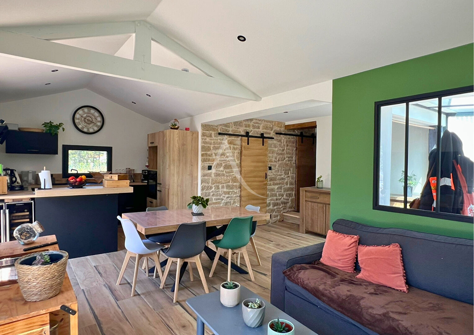 Vous tomberez sous le charme de sa pièce de vie avec pierres et poutres apparentes vue sur la verdure. Sa cuisine ouverte et aménagée, parfaite pour des moments conviviaux.