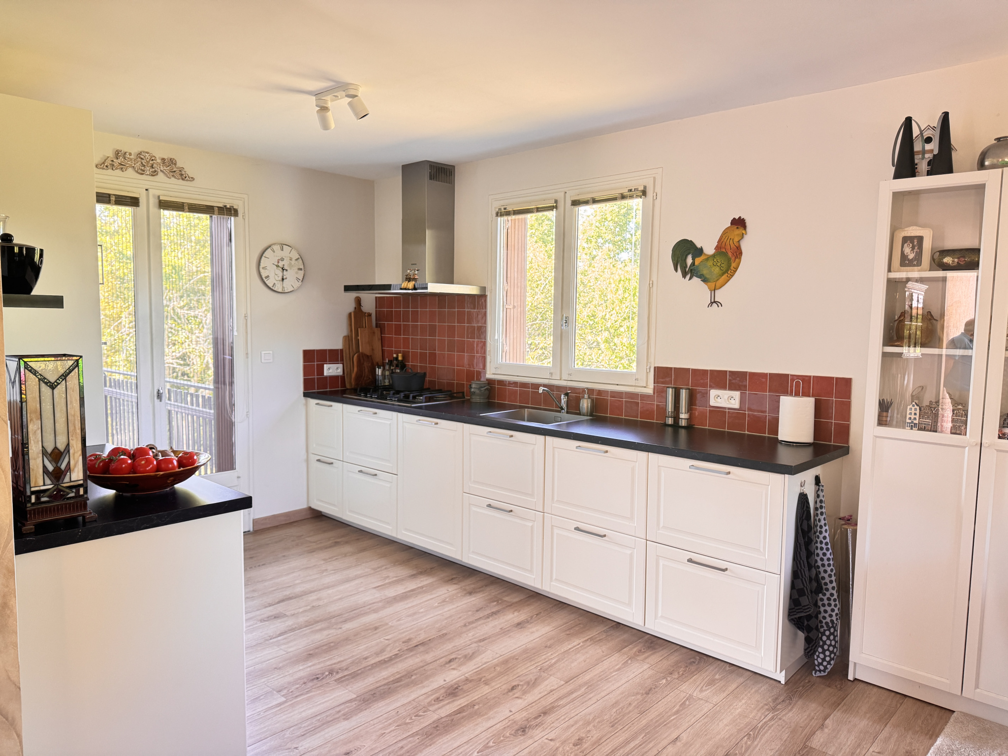 Dans un quartier résidentiel proche du centre ville, joli pavillon des années 80 rénové depuis peu et offrant environ 116m2 habitables avec en rez de jardin un bel espace de vie avec cuisine ouverte d'environ 40m2 permettant un accès direct sur les exterieurs et la terrasse, deux chambres de plain pied, une salle d'eau et un wc. A l'étage un espace ouvert à usage de chambre et une pièce à finir d'aménager, permettant la création d'une quatrième chambre et d'une salle d'eau (évacuation et arrivée d'eau déjà en place). Piscine à l'abri des regards. Sous sol à usage de garage. Parcelle de jardin fleurie et arborée.