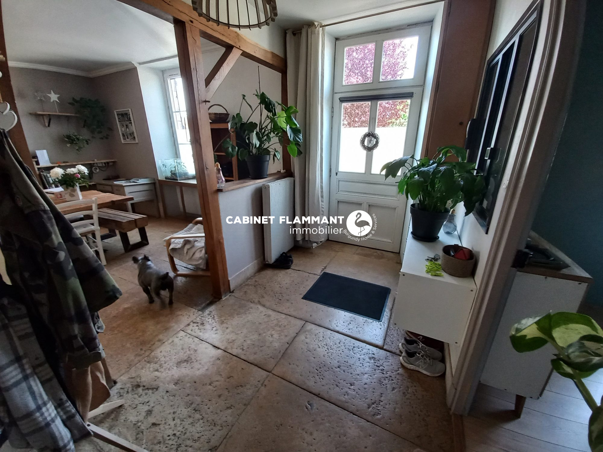 En rez-de-chaussée, accessible par la cour et la terrasse, une belle pièce de vie, lumineuse et spacieuse, type open-space s'ouvre sur la cuisine. Le sol en pierres de bourgogne et la présence du bois donne un côté accueillant et chaleureux.