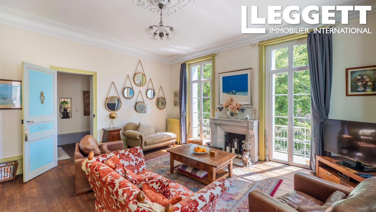 A37847LOP17 - Cette belle maison avec 9 chambres, appartement indépendant, garage et jardin et acès rivière se trouve au centre ville de Pons avec son donjon médiéval sur le chemin de St. Jacques de Compostelle! Accès facile à l'autoroute A10 et à 1 heure de Bordeaux et la Rochelle! Les belles plages de la côte atlantique et le magnifique estuaire de la Gironde ne sont qu'à 30 minutes.