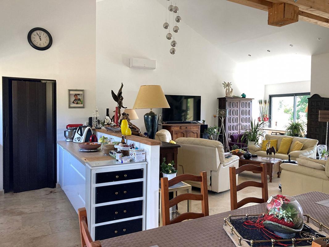 46000 Cahors à 10 minutes au nord, maison mitoyenne de plain-pied de près de 130m², 5 pièces, 3 chambres, construite en 2023, en parfait état et avec de belles prestations. Terrain de 5000m² environ. Salon salle à manger et cuisine ouverte 74m², 3 chambres de 11.2 ; 13.5 et 14 m², salle de bain et wc séparés, cellier-buanderie. Chauffage au sol par pompe à chaleur air/eau, volets roulants électriques, isolation par l'extérieur. Fosse septique. Taxe foncière 800 euros environ. DPE  B (Montant moyen estimé des dépenses annuelles d'énergie pour un usage standard établi à partir des prix de l'énergie le 01/01/2021 : entre 605 et 819 euros).