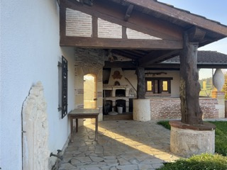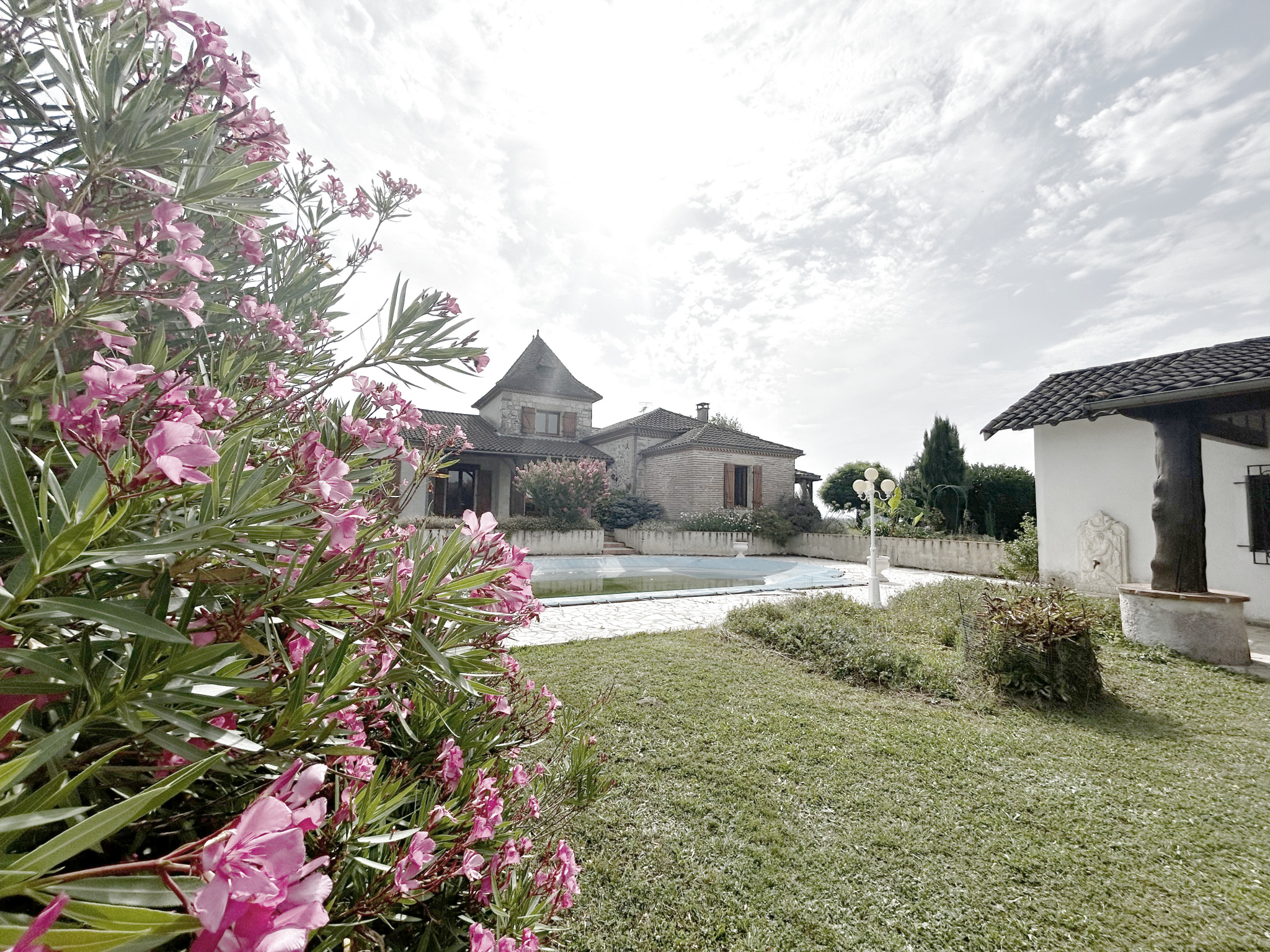 sur un terrain joliment arboré (2 600 m2) avec piscine et grand pool house ( barbecue, véranda,...) sans vis à vis, vous tomberez sous le charme de cette jolie maison en pierres d'environ 225 m2 concue pour le bonheur de la famille et amis.