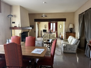 La maison se compose au rez-de-chaussée d'une vaste entrée désservant une spacieuse pièce de vie d'environ 80 m2 avec cuisine américaine, cheminée , trés belles ouvertures sur la campagne.