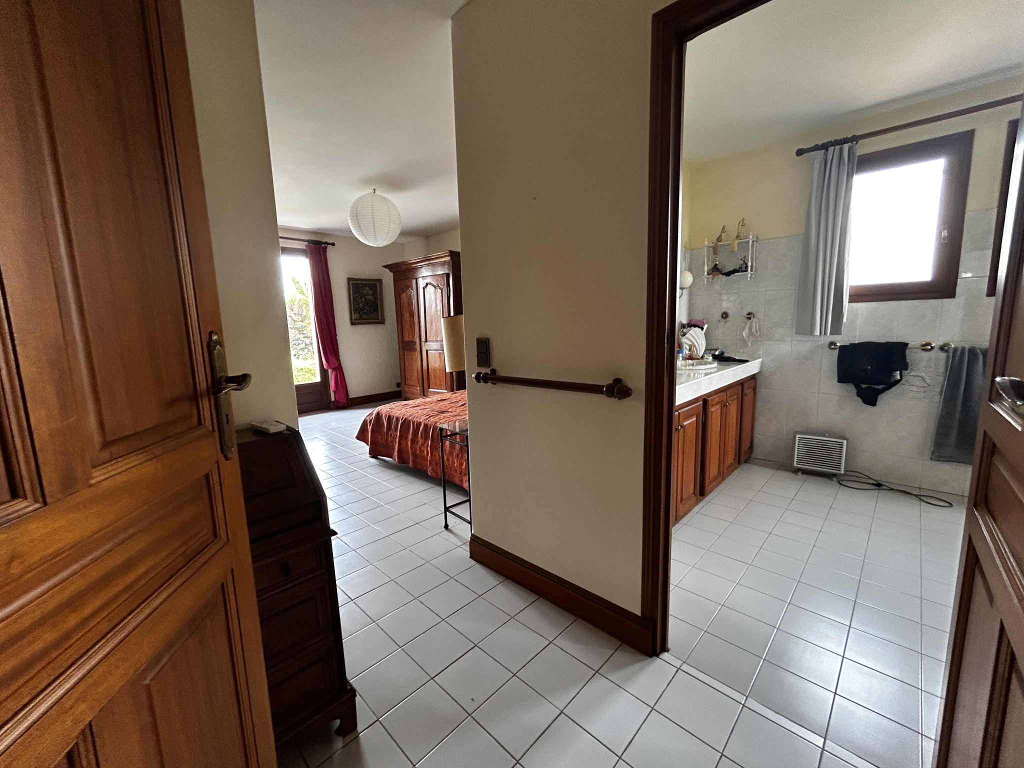 Trois chambres également en rez-de-chaussée dont salles d'eau, ainsi que deux salles de bain avec douche viennent compléter les pièces de la maison.