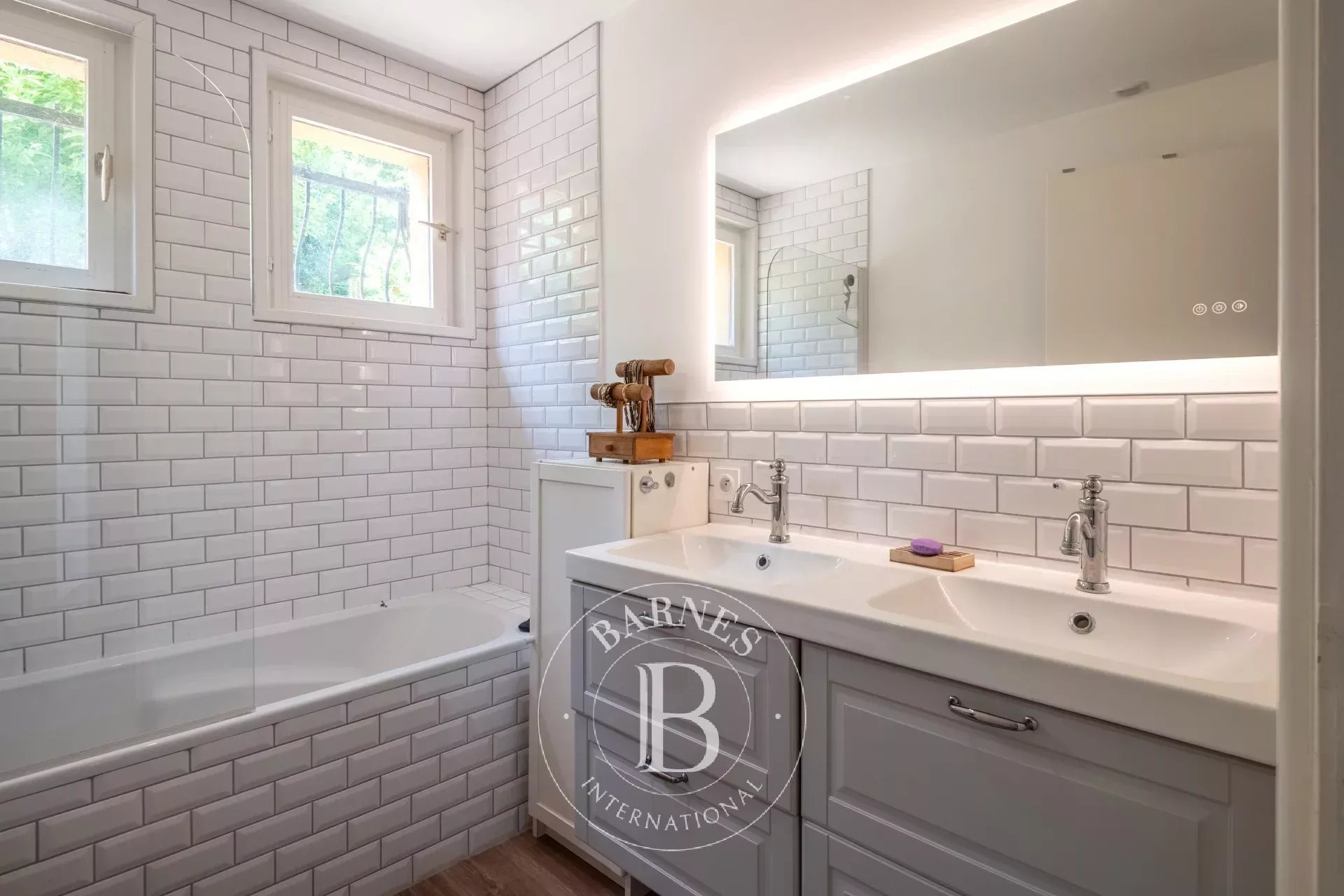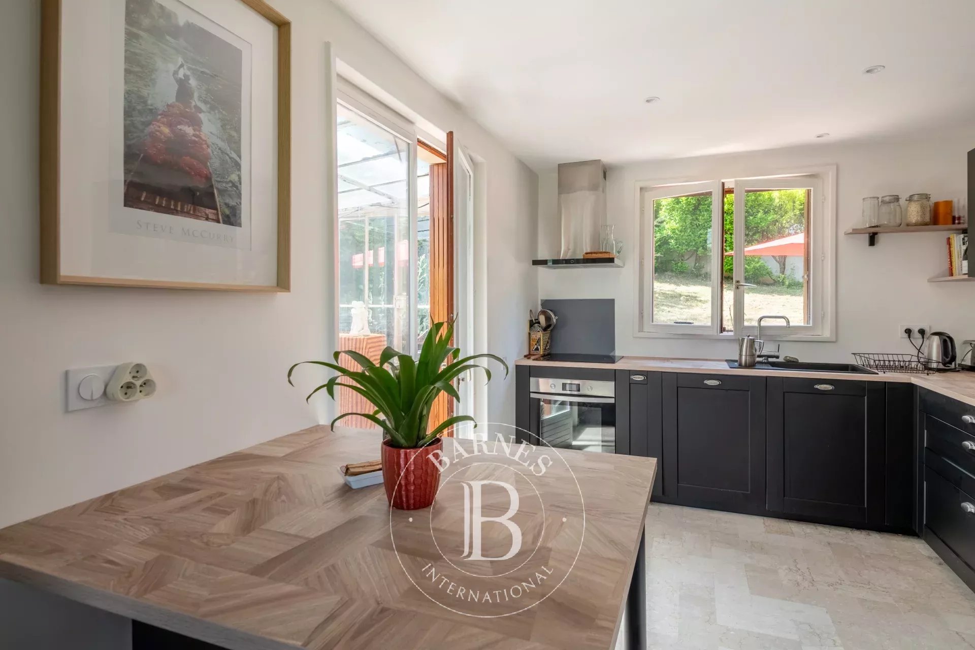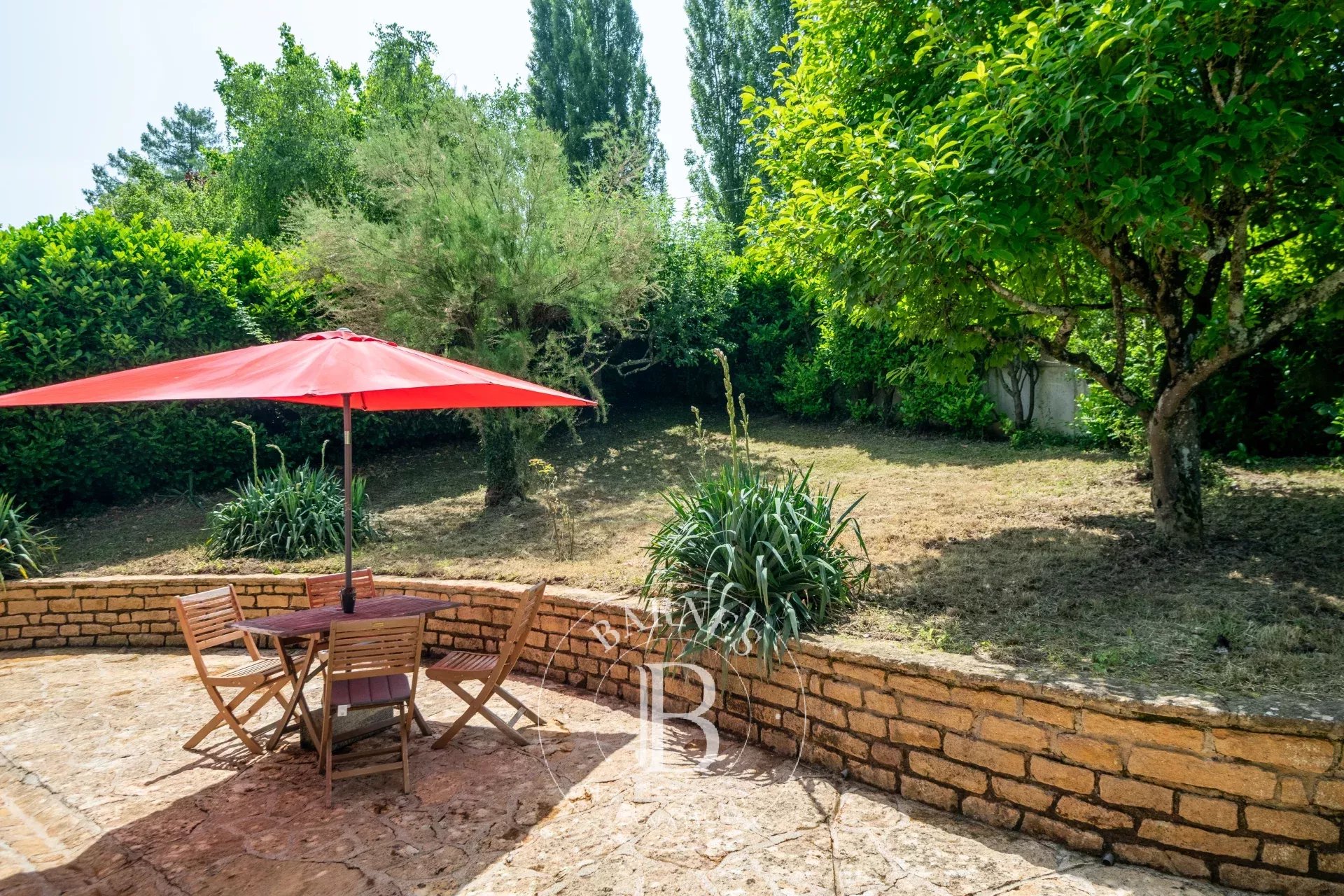 Implantée sur un terrain arboré de 1392 m² sans vis-à-vis, la propriété bénéficie d’un cadre calme et verdoyant, tout en étant à quelques minutes du centre du village par un chemin piétonnier.