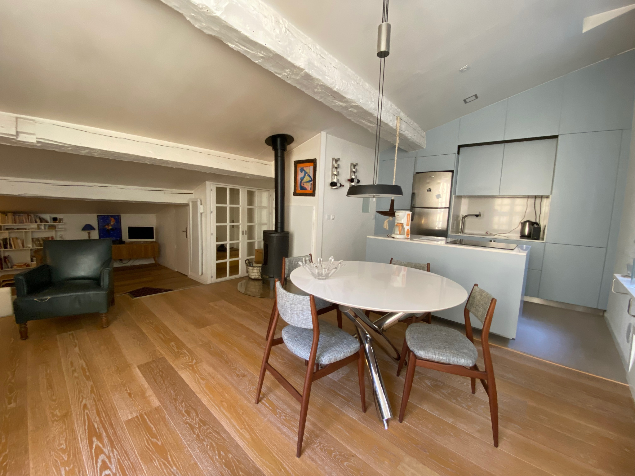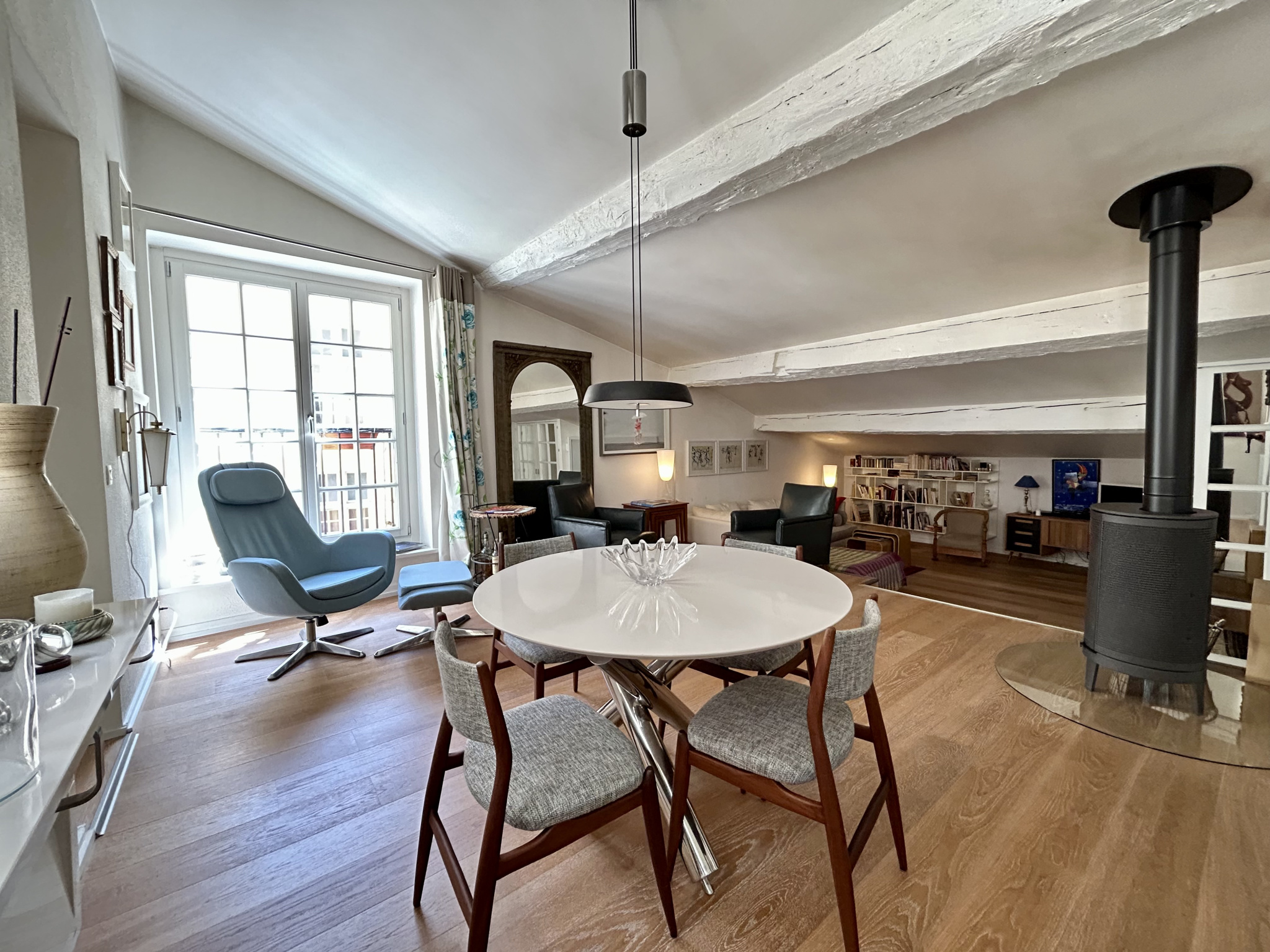 Dès que vous franchirez le seuil, vous serez séduit par l'atmosphère unique qui émane de ce lieu. Ses prestations, son calme absolu et son ambiance chaleureuse en font un appartement d'exception. L'authenticité du lieu, la convivialité d'un poêle à bois et l'originalité de ses espaces confèrent à ce bien un caractère inimitable.