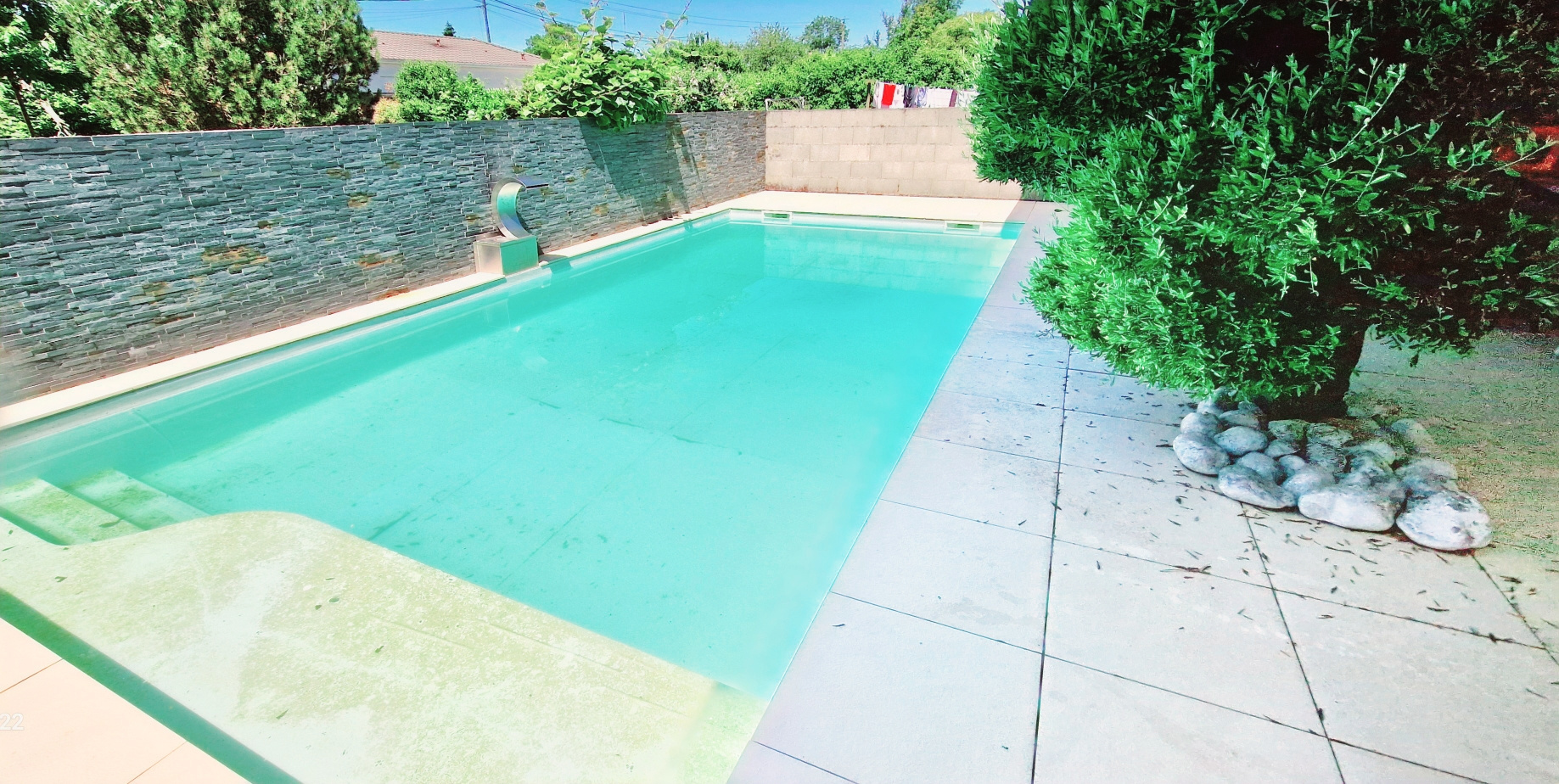 Sur la partie Ouest de la propriété se situe l'espace végétalisé d'environ 1 250m2, avec des arbres fruitiers et un potager sur un terrain plat ainsi qu'une terrasse semi couverte bordant une piscine enterrée 9 m/4m et son pool house, en prime vous profiterez d'une magnifque vue sur la tour du château qui se dresse face à la bâtisse. Vous disposerez également sur cette partie de la parcelle d'un second portail d'accès et d'un appentis.