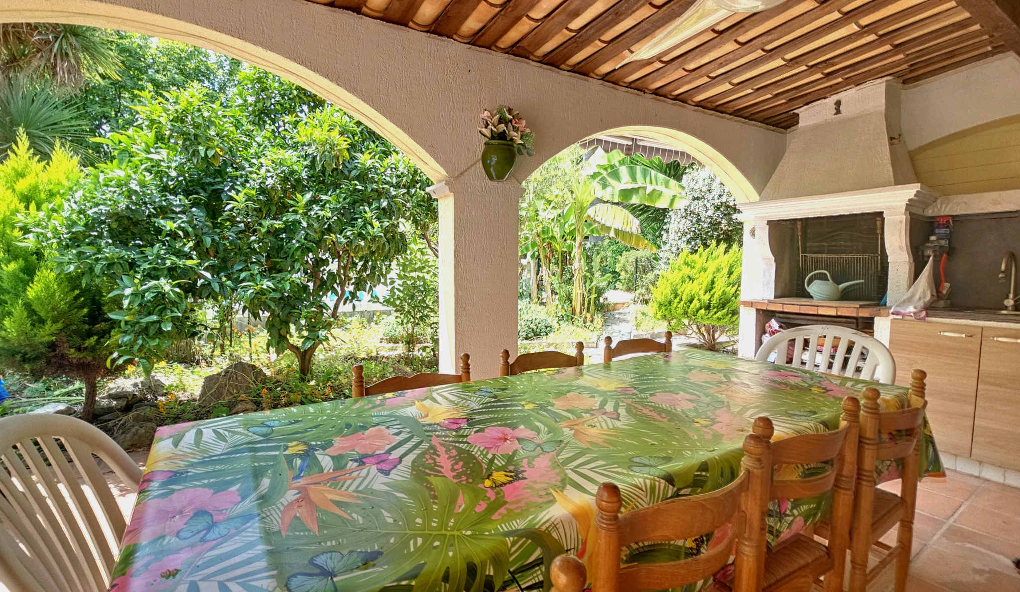 RARE - Au sein d'une ancienne maison de 1904, divisée en plusieurs lots, ce bien possède toutes les qualités d'une maison ! Un total de cinq pièces sur 109 m2, et deux niveaux. Vous profitez d'un magnifique jardin privatif arboré, palmiers, bananiers, fleurs exotiques, dépaysant ! Une pisicine de 35 m2, un pool-house, une cuisine d'été équipée de 18 m2, un studio indépendant fonctionnel, pour en faire bureau, du locatif, télétravail, recevoir..