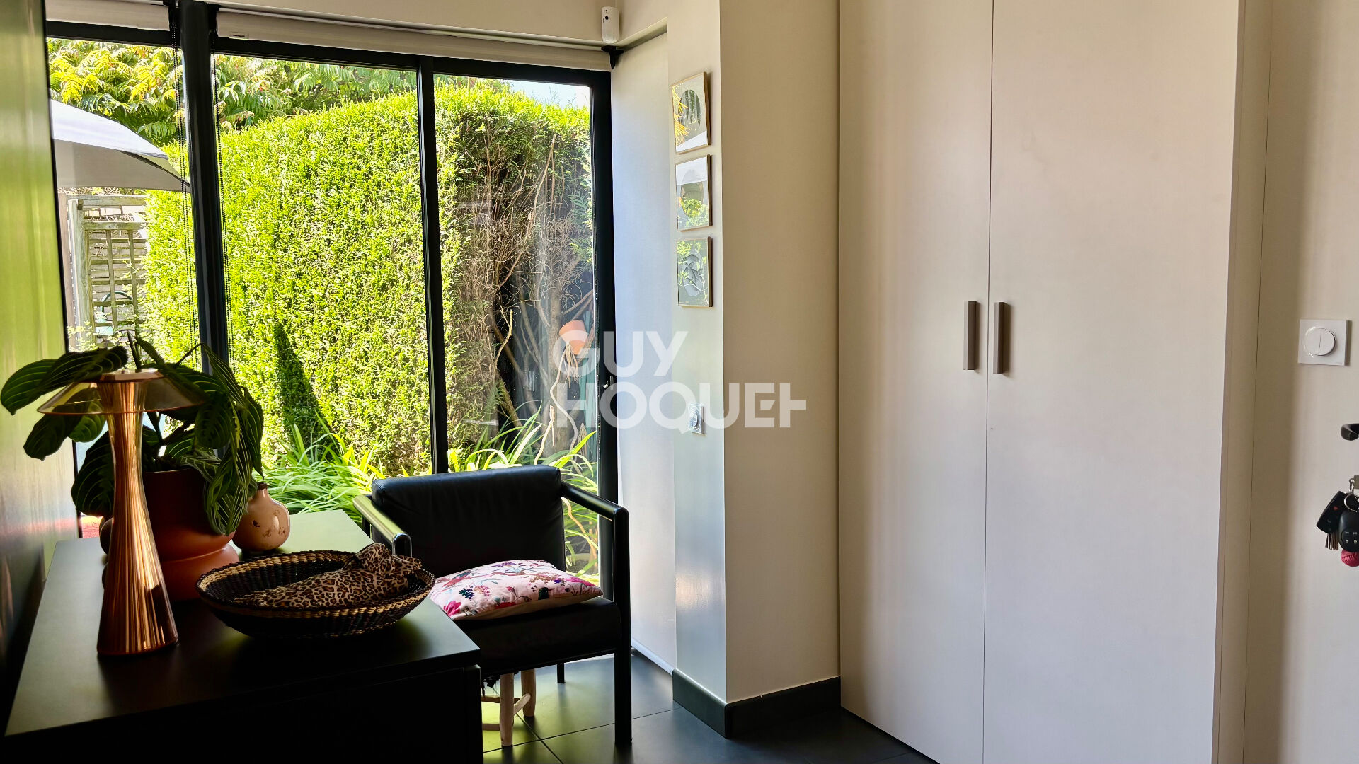 Au rez-de-chaussée, une entrée avec placard, une cuisine aménagée et équipée avec un accès à la terrasse par une grande baie vitrée. Une pièce de vie en enfilade, une chambre avec une salle d'eau privative, viennent compléter ce bien.