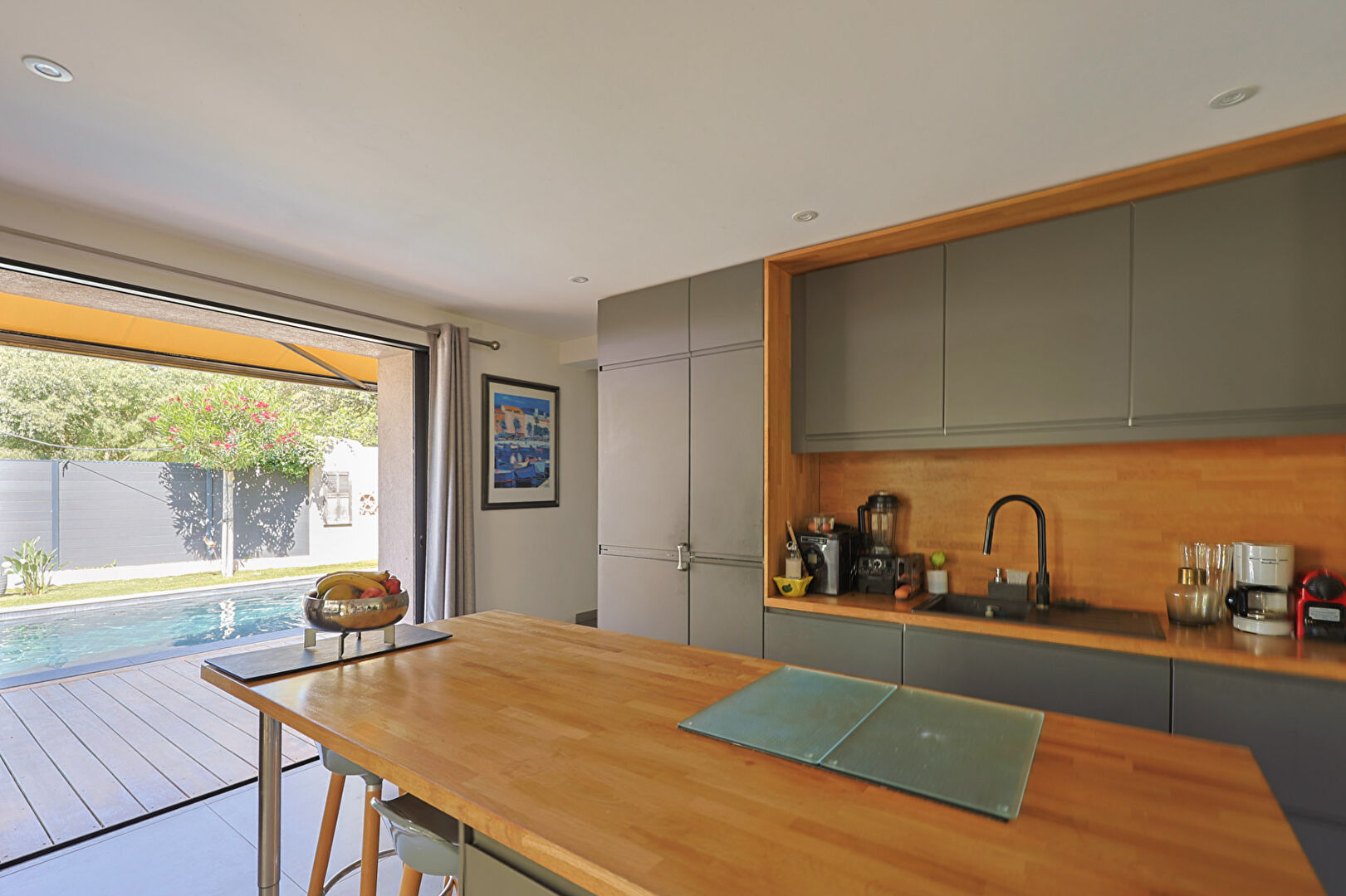 Entièrement rénovée avec des matériaux de qualité supérieure, cette maison aux lignes épurées développe 218 m² habitables sur une parcelle paysagée de 671 m², à l'abri des regards.