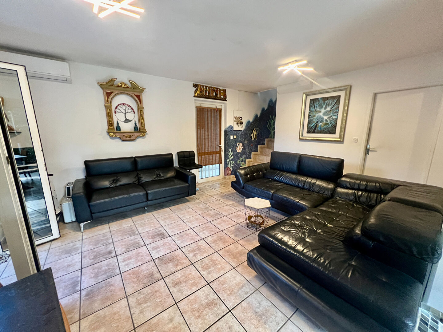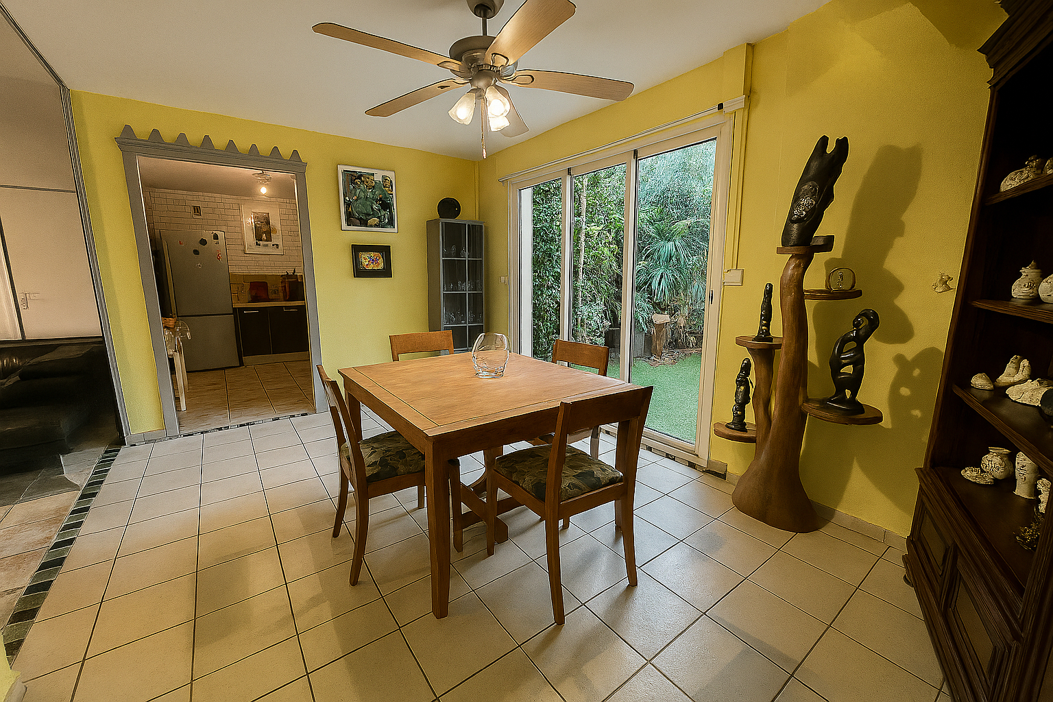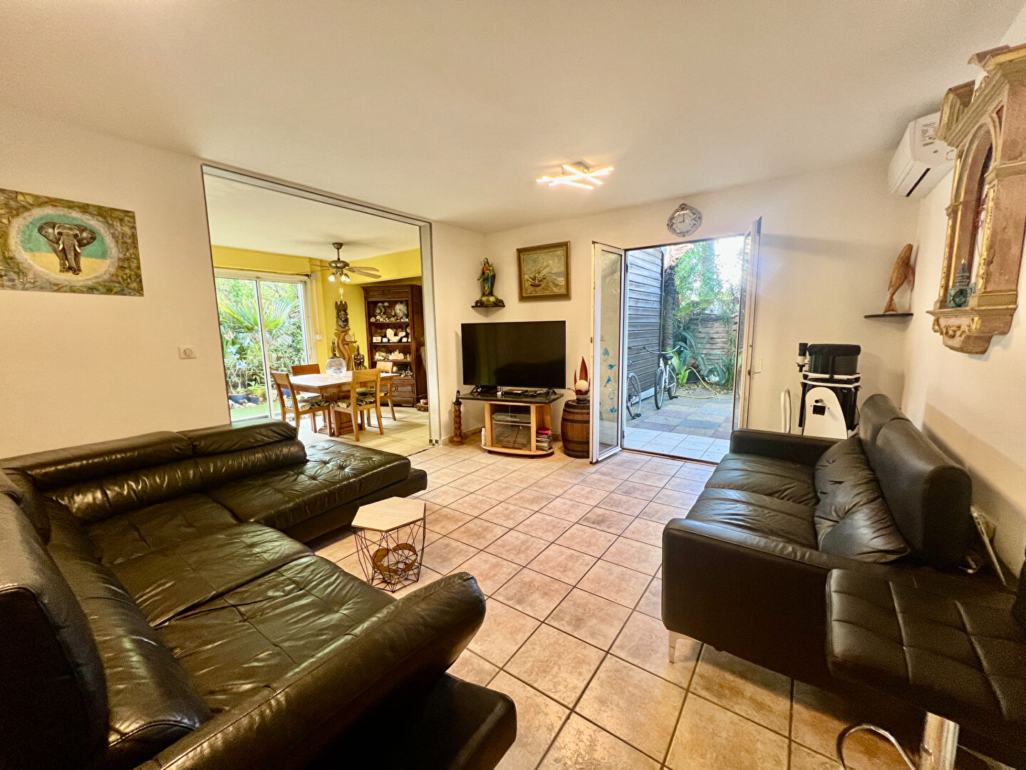 Séjour de 20m² ouvert sur un jardinet de 20m², idéal pour vos moments de détente.