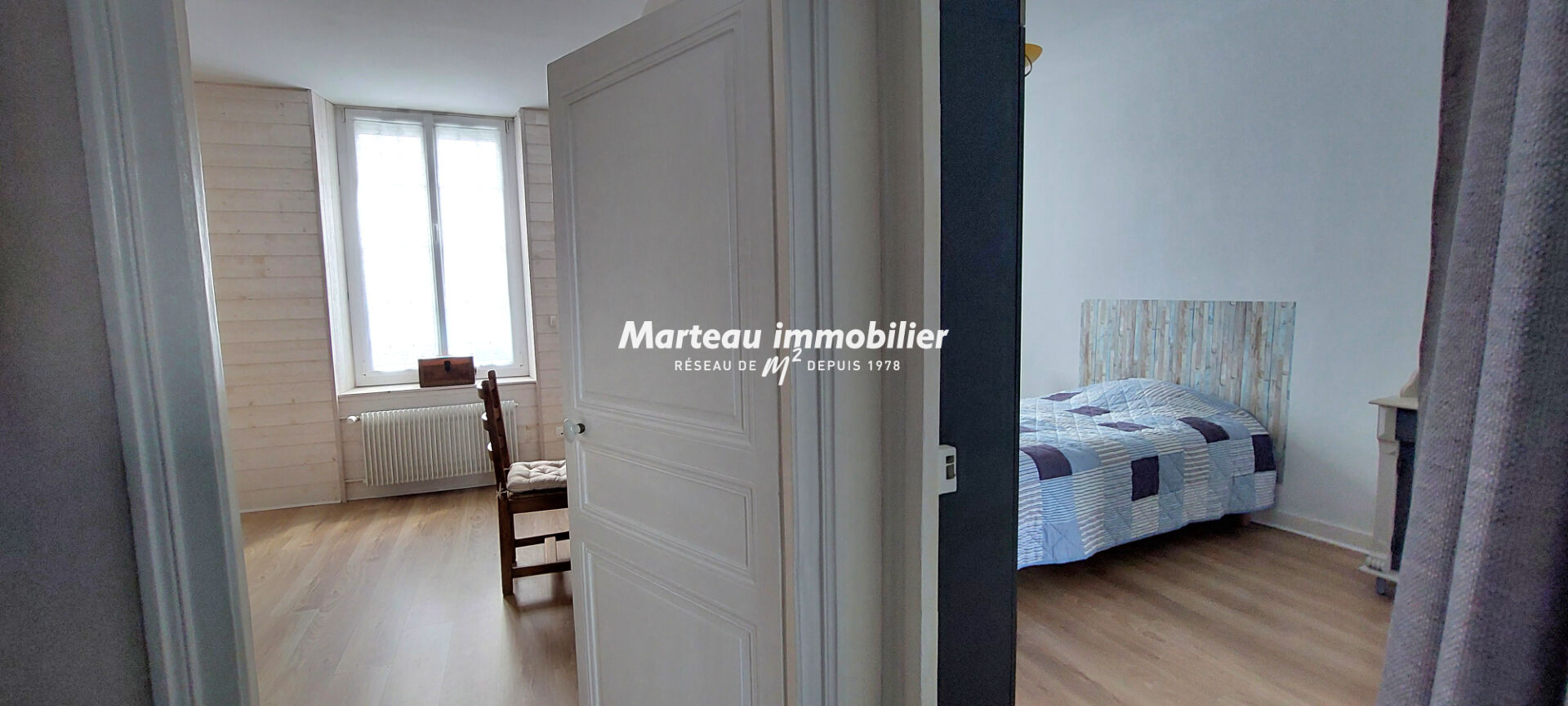 Le deuxième étage comprend un palier, deux chambres confortables, une grande salle d'eau avec double vasque, toilettes et espace lingerie très fonctionnel.