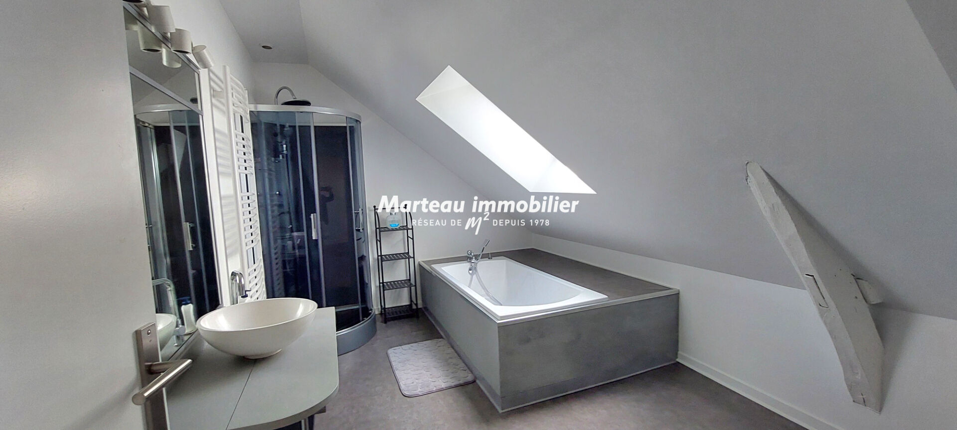 Au troisième et dernier étage, vous trouverez un palier, deux autres chambres ainsi qu'une grande salle de bain avec douche, vasque et toilettes.