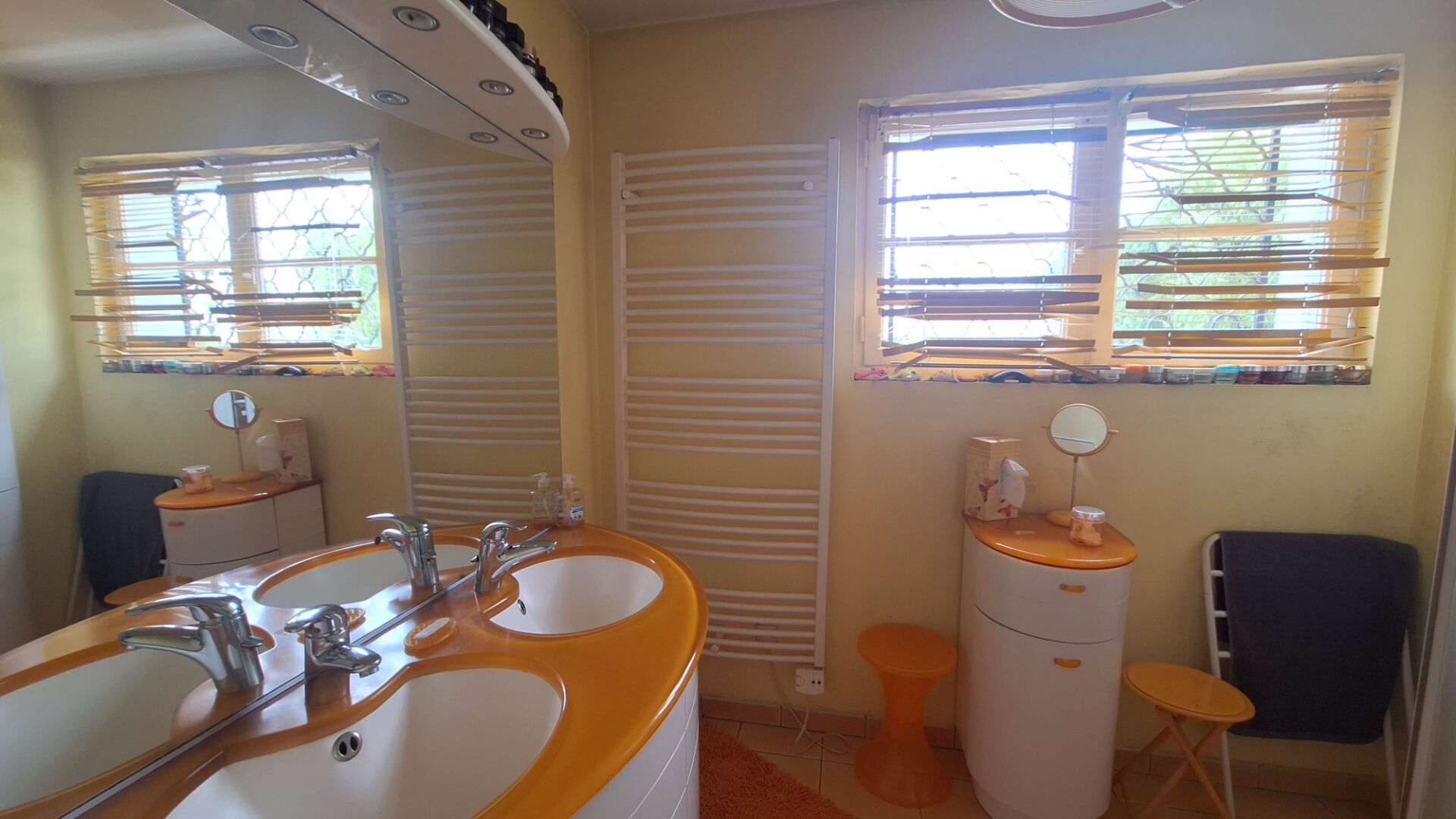 A l'étage : palier desservant 2 chambres, bureau et une salle d'eau, toilettes séparés.