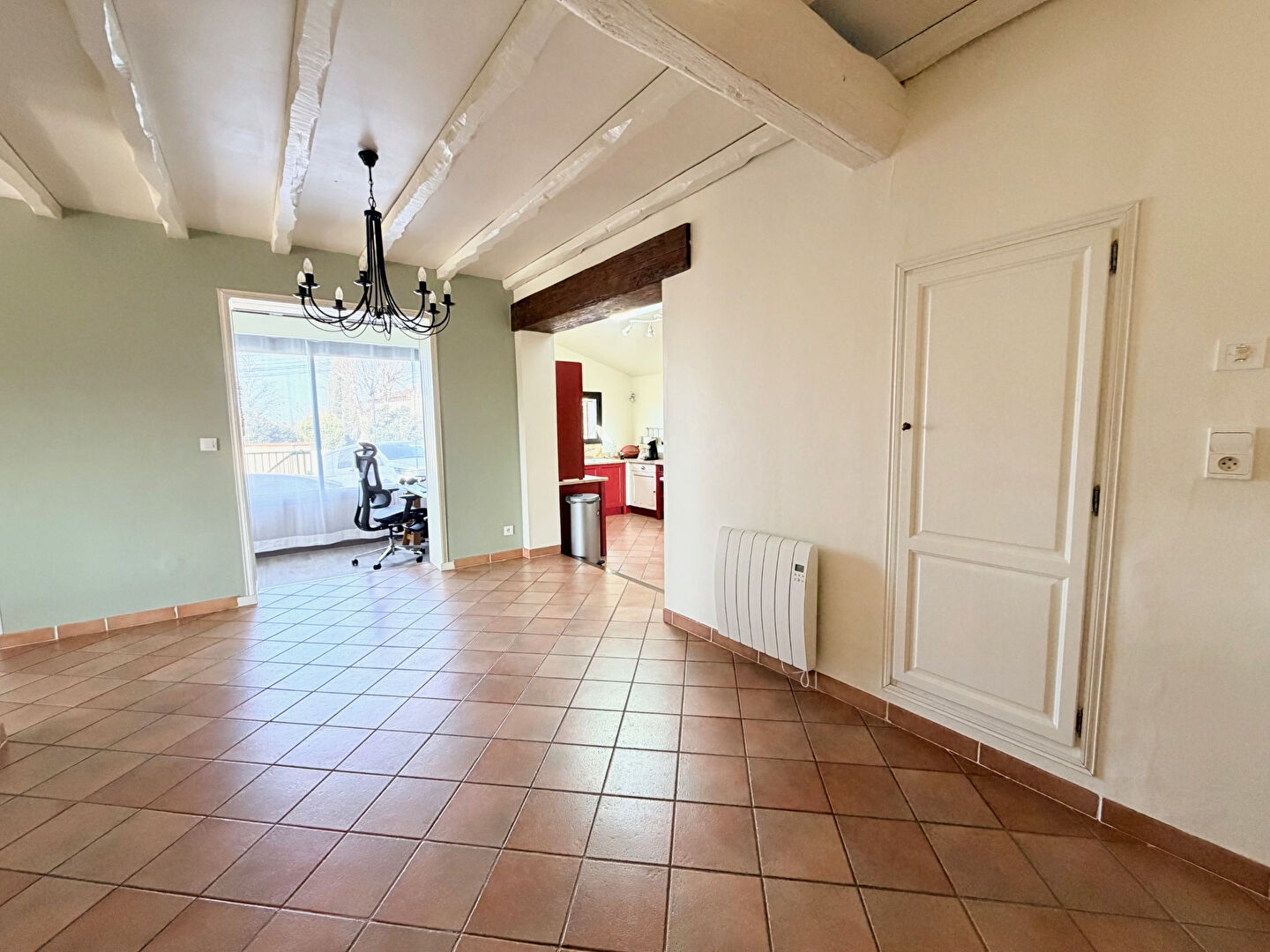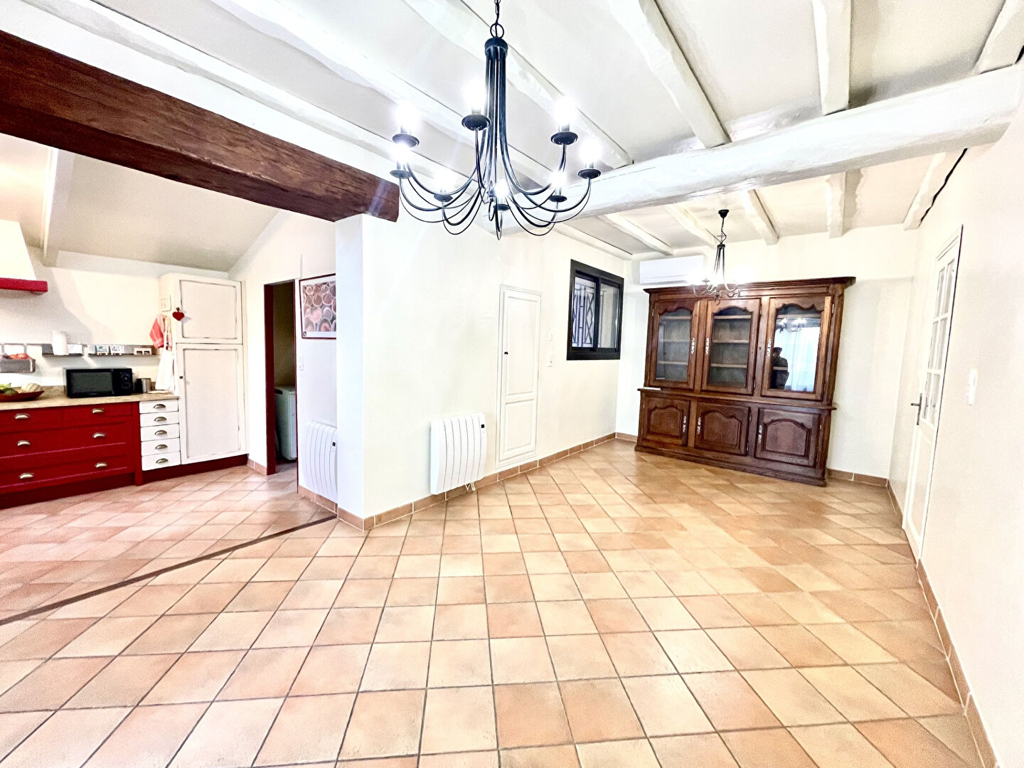 Située au calme, cette maison se compose d'un spacieux salon séjour avec insert et climatisation, ouvert sur une belle terrasse couverte , d'une salle à manger ainsi que d'une cuisine avec cellier et véranda.