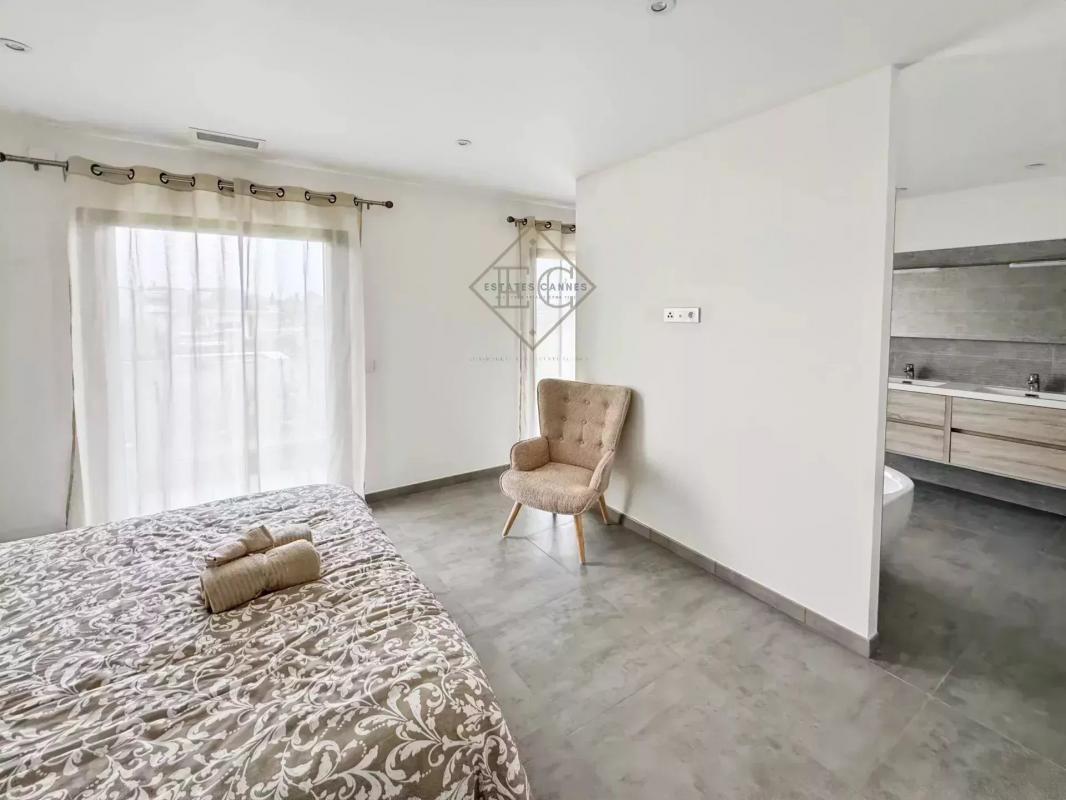 Idéalement située à seulement 10 min de la Croisette et à 5 minutes à pied des commerces de proximité, cette villa offre un cadre de vie rare, où chaque détail a été pensé pour sublimer votre quotidien.