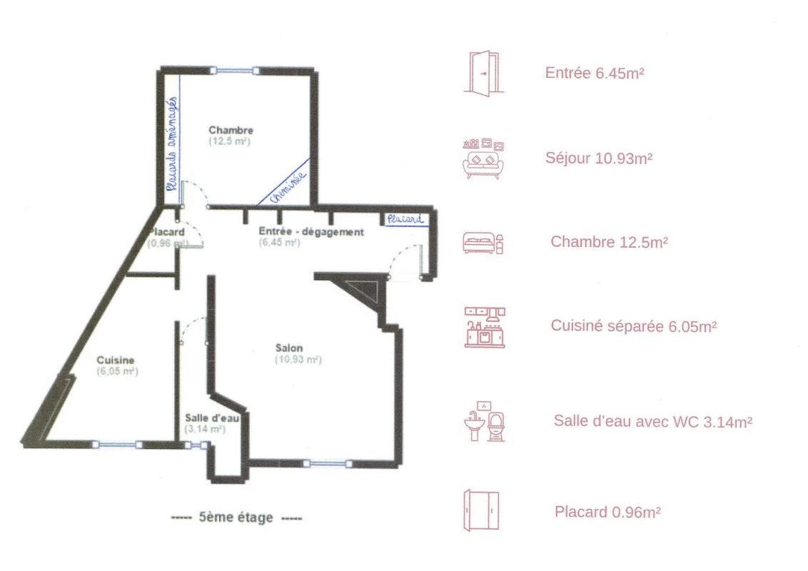 L'entrée dessert un séjour accueillant où la luminosité naturelle se mêle au charme de l'ancien. La cuisine est séparée, avec un potentiel à révéler après quelques travaux de rafraîchissement. La chambre, spacieuse et confortable, bénéficie également d'une belle clarté. Enfin, la salle d'eau avec WC complète cet ensemble fonctionnel et optimisé. Placards aménagés offrant de belles possibilités de rangement dans l'entrée et dans la chambre. L'appartement dispose en complément d'une cave en sous-sol, idéale pour le stockage.