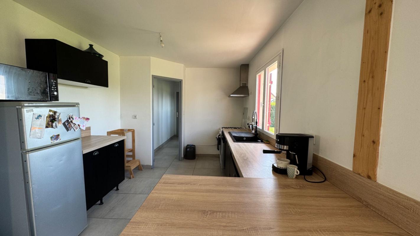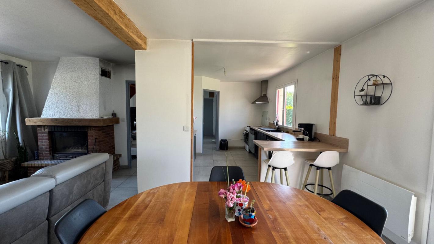 Une entrée desservant, une salle salon avec son coin cheminée, une cuisine ouverte équipée et aménagée, une chambre Plain pied, une salle d'eau et les sanitaires indépendants.
