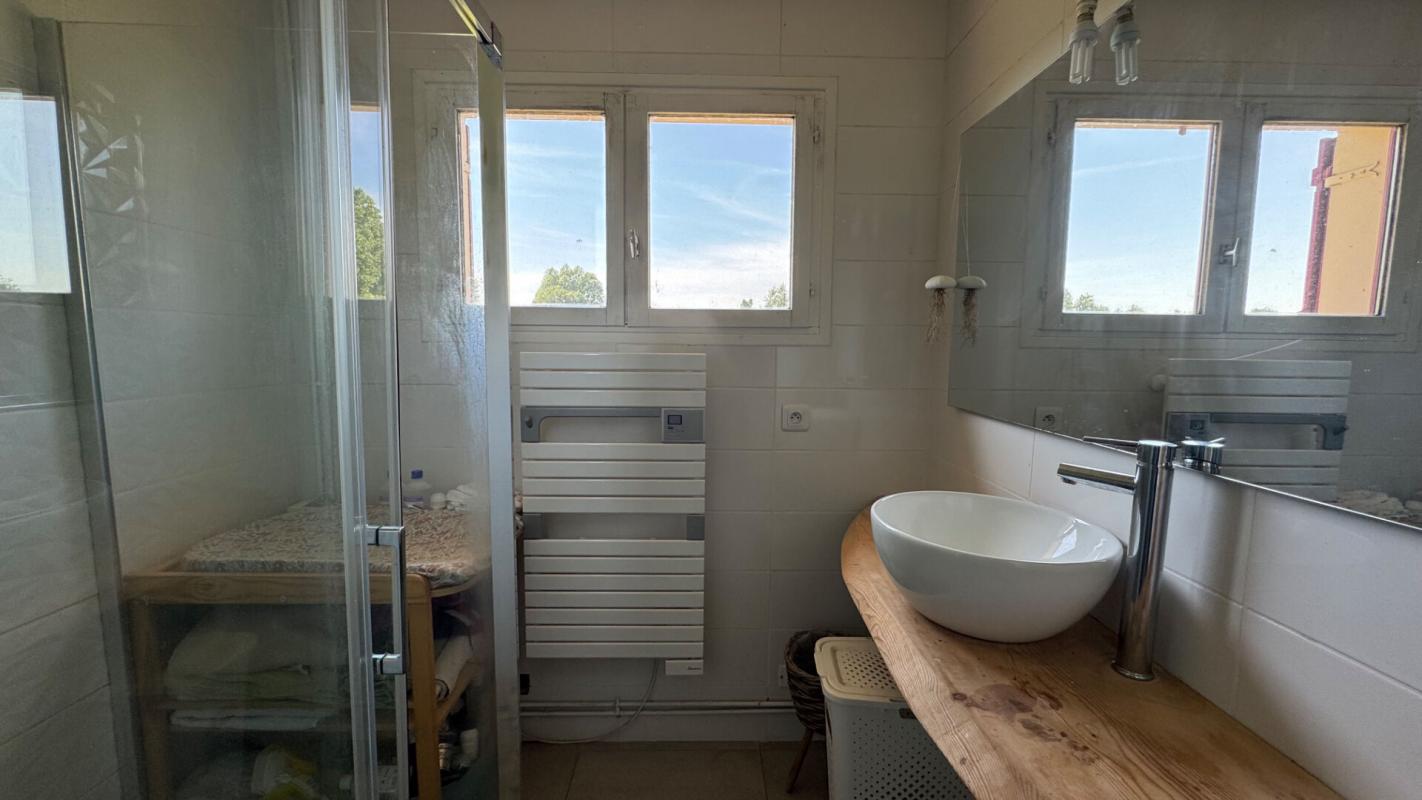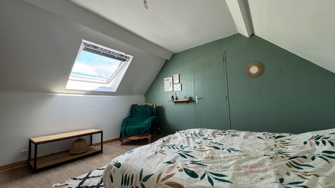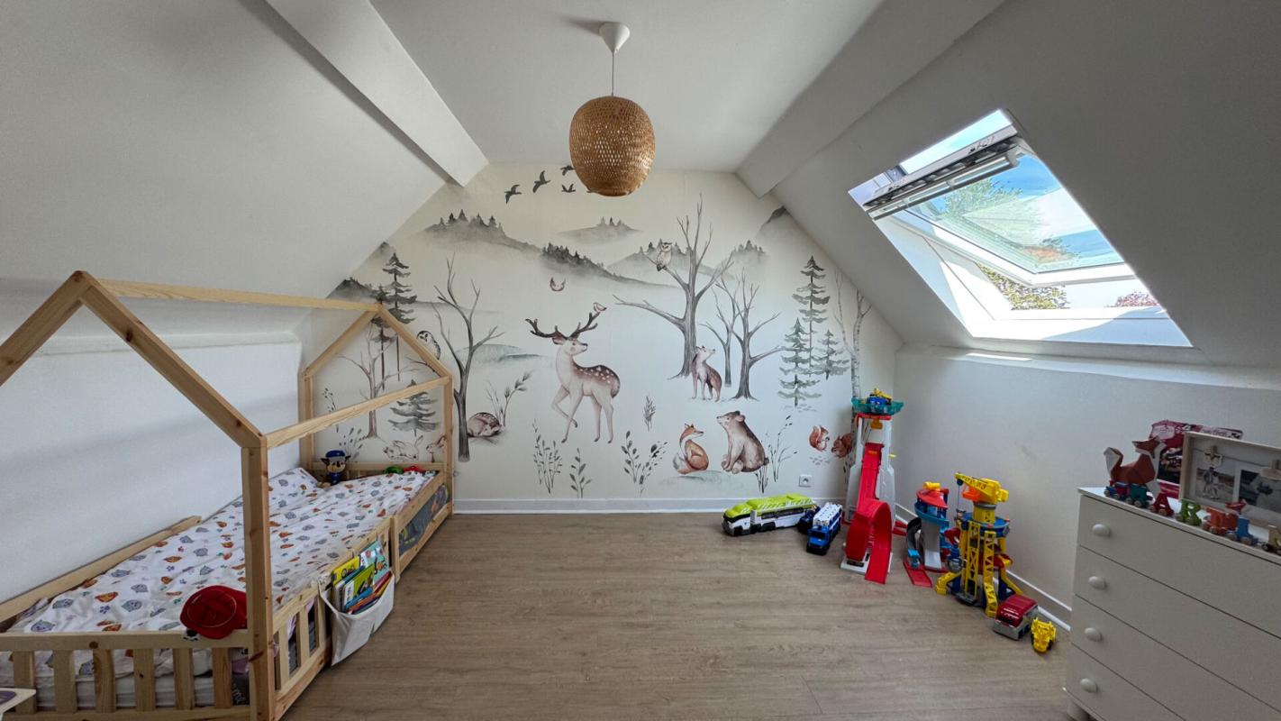 Un palier disposant deux chambres, une salle de bain avec les sanitaires et un grenier à aménager.