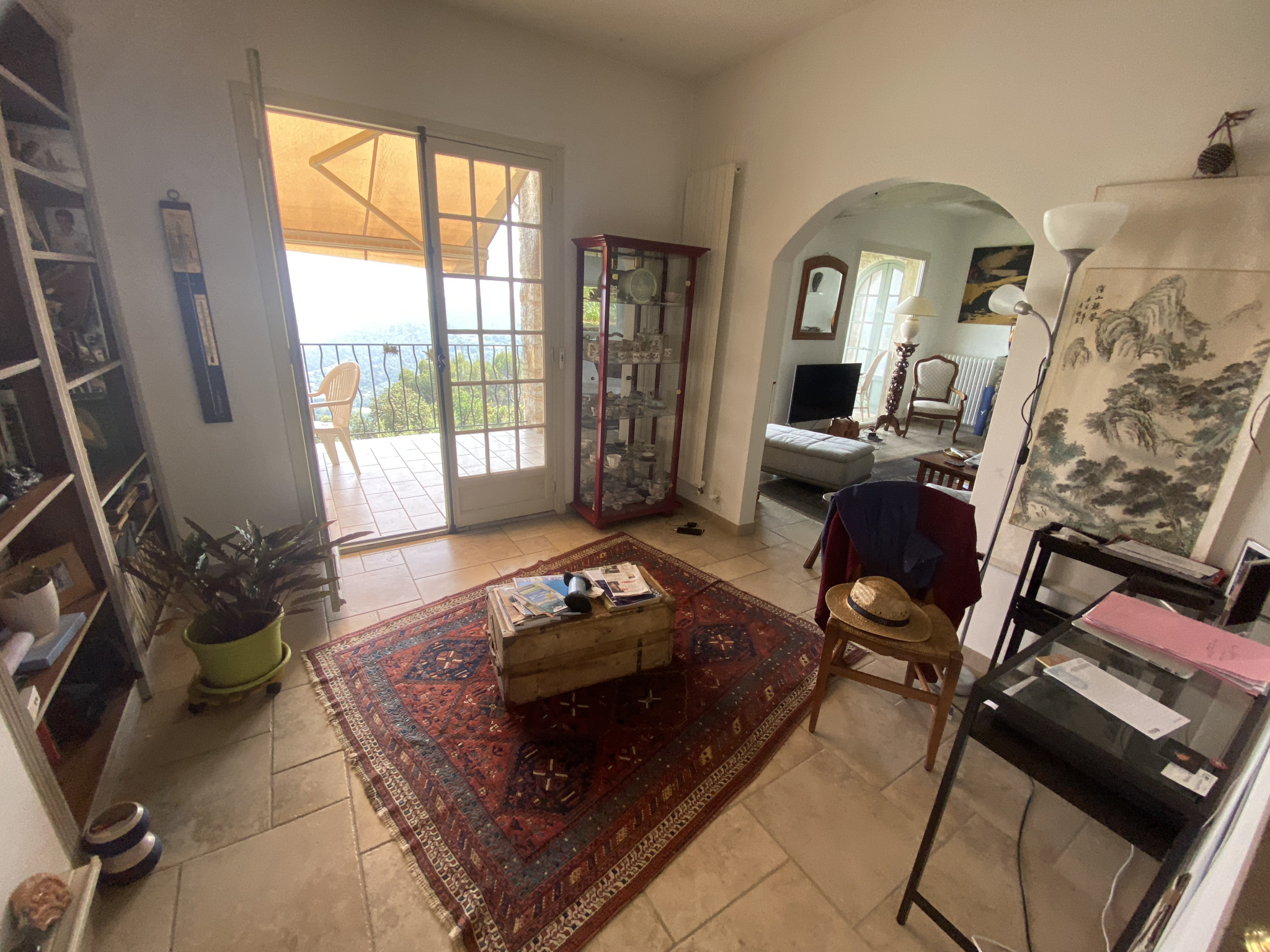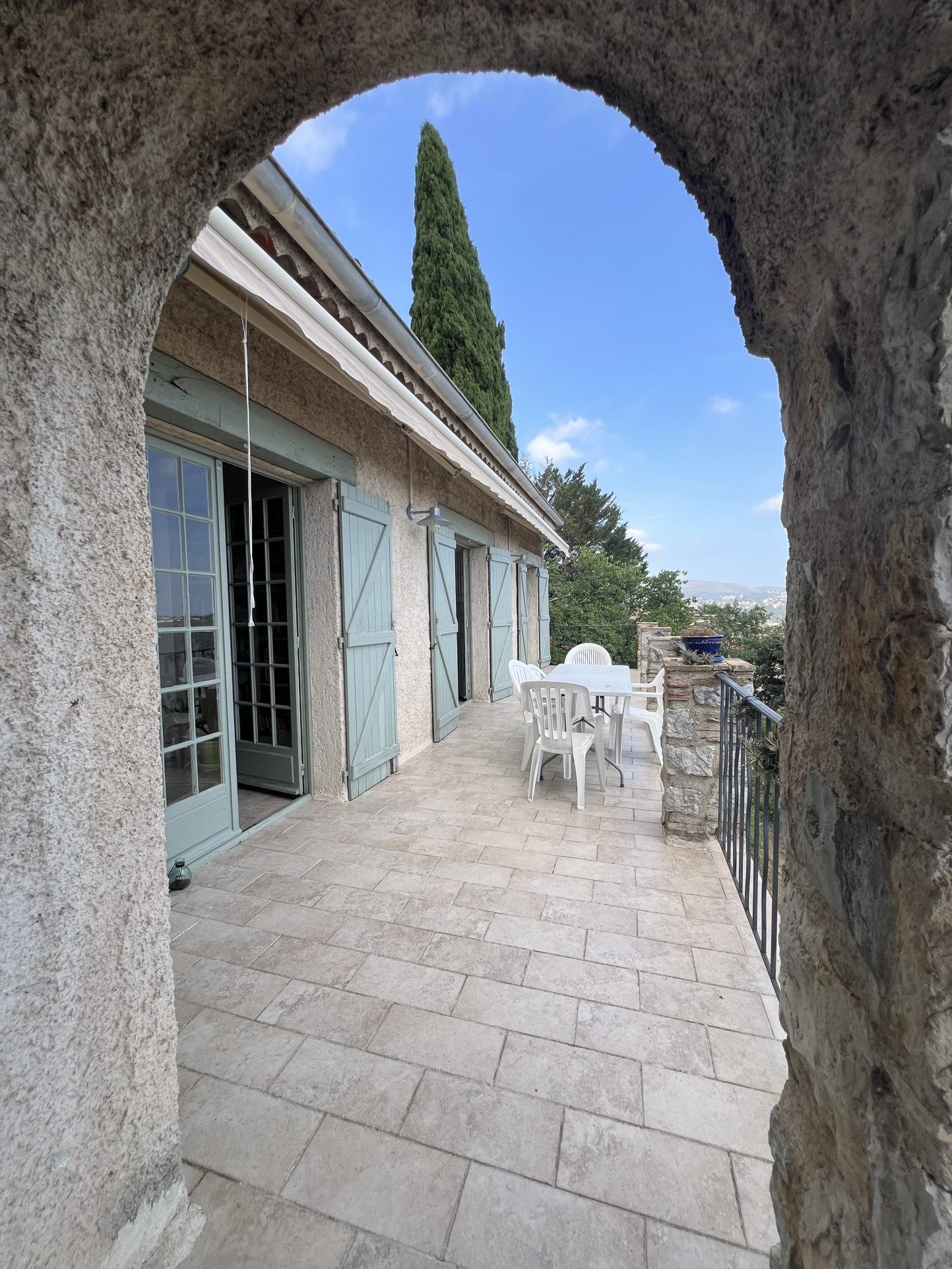 Belle villa vue mer panoramique, 30 mn aéroport, Rdc: Double séjour, salle à manger, coin cheminée, cuisine aménagée et équipée, 2 chambres, Sdb et WC. Terrasse.