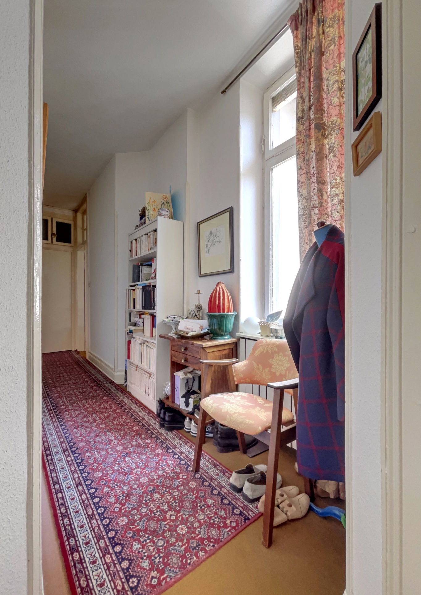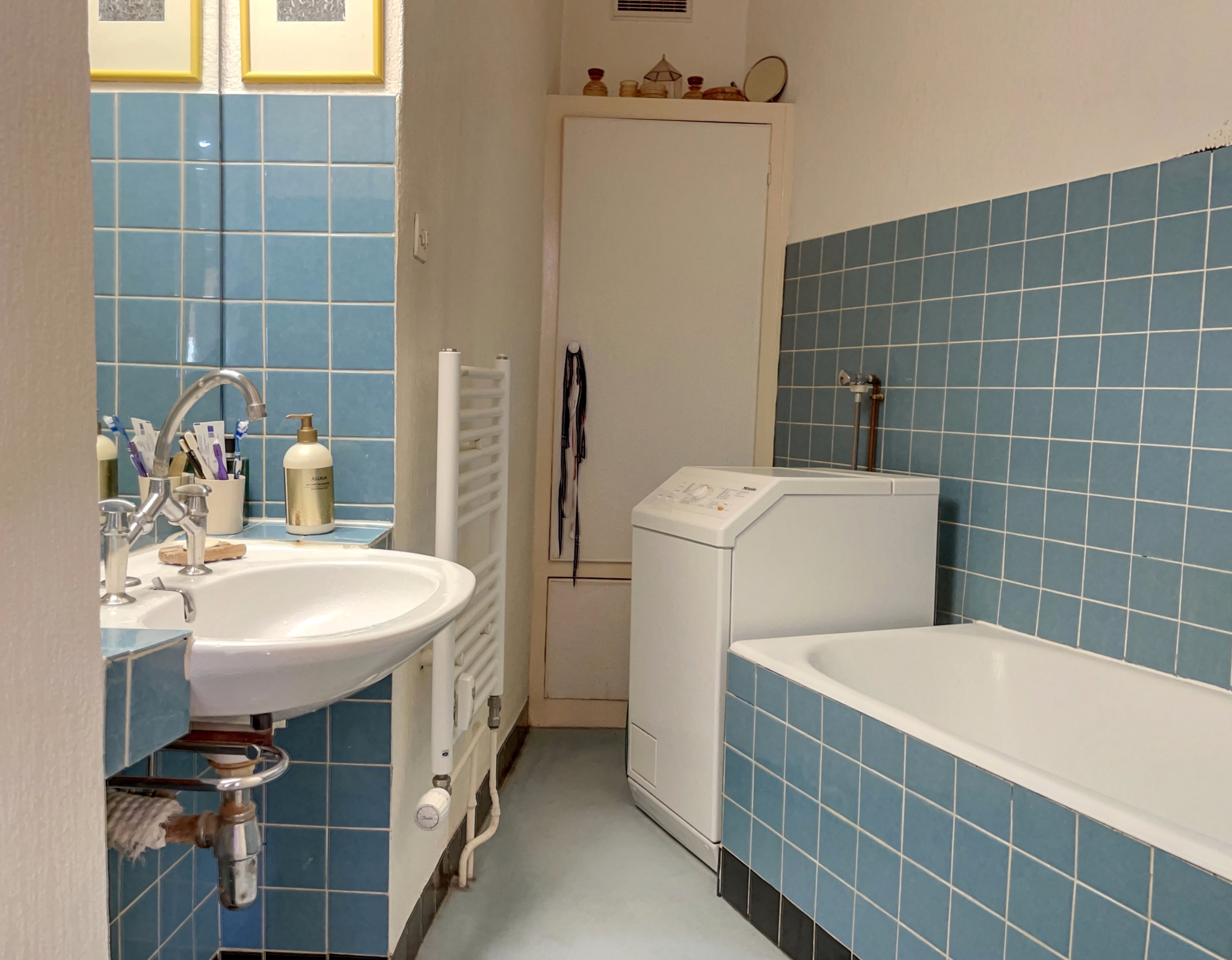 Niché au quatrième étage sans ascenseur d'un magnifique bâtiment d'époque datant de 1904, il se compose d'une entrée avec dégagement, un salon-salle à manger de 32,85 m2, une cuisine, deux grandes chambres de plus de 17 m2 , une salle de bains avec baignoire, un WC séparé, un cellier et une grande cave de 9m2 et une cour commune avec emplacement vélo.