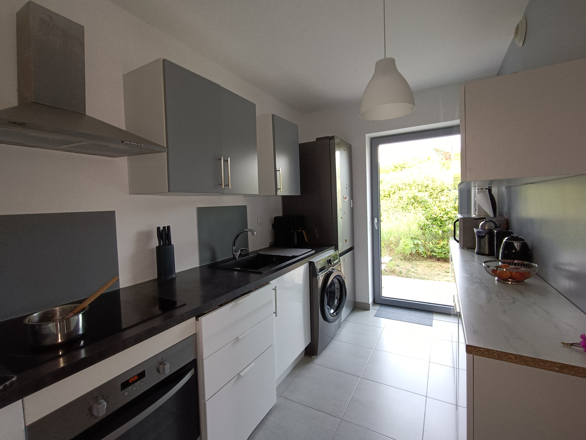 Composée d'une entrée avec placard, une cuisine aménagée avec un accès sur l'extérieur, un cellier, une salle d'eau avec wc et un salon/séjour donnant directement sur la terrasse sans vis à vis.