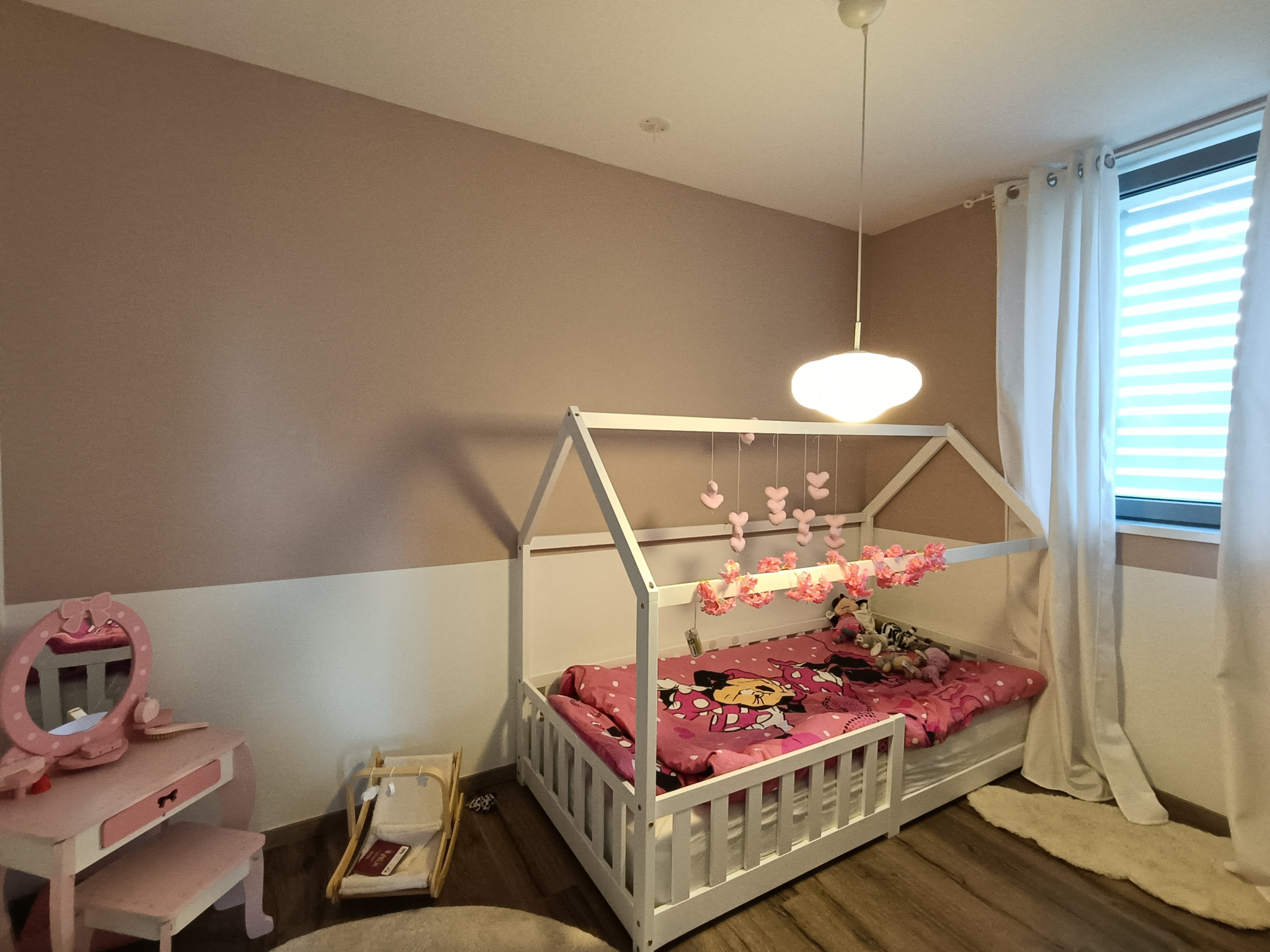 L'étage est composé d'un palier desservant 2 chambres dont une avec une partie dressing ou un espace bureau, selon nos envies et nos besoins, un wc séparé et une salle de bains.