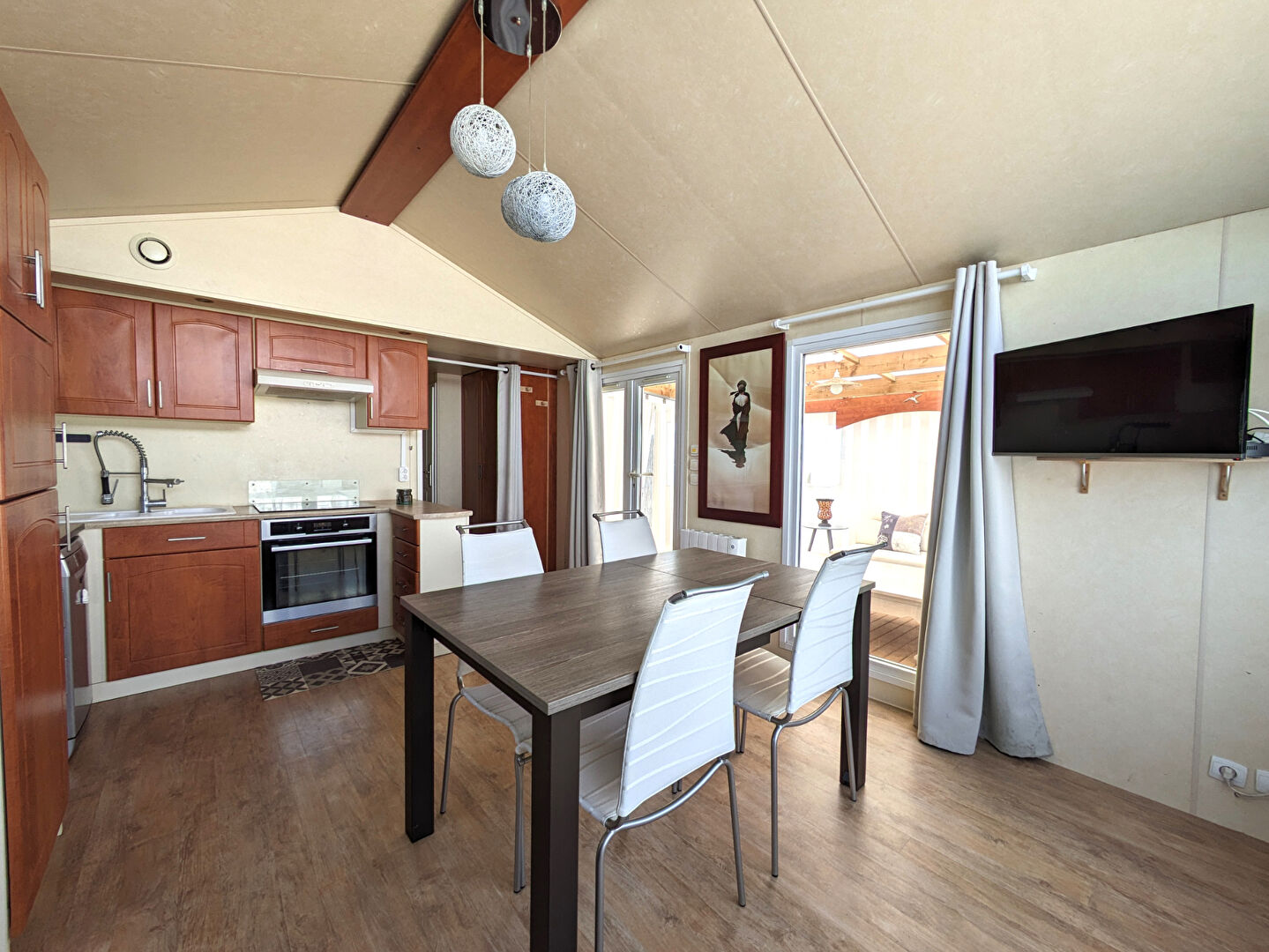 Venez découvrir ce confortable mobilhome de 41m² situé au calme dans une résidence avec piscine sur un terrain de 154m².