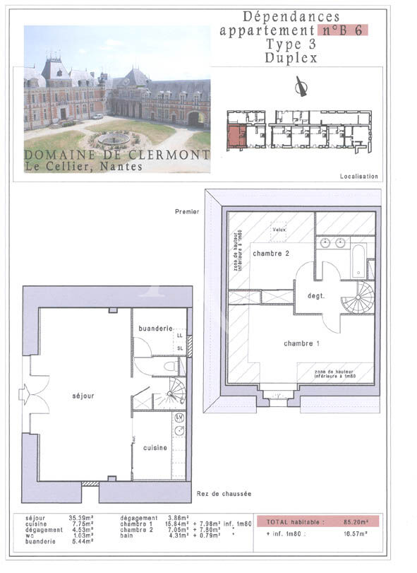 L'Adresse 4Immo vous propose un appartement trois pièces en duplex dans une copropriété au cadre unique : Le Château de Clermont.