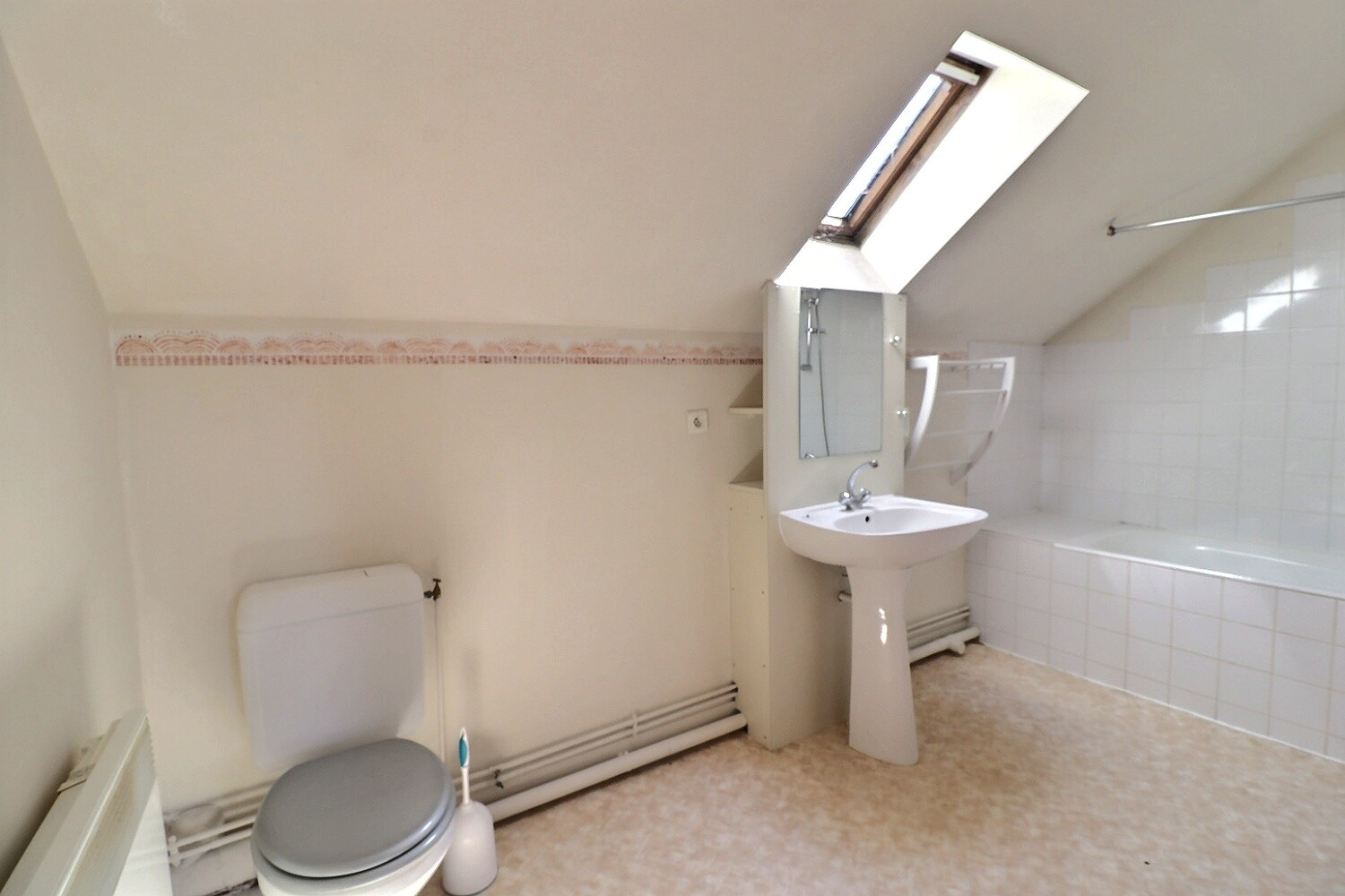-au 1er étage : un appartement T3 de 86.58 m² loué 550 Euro HC/mois.