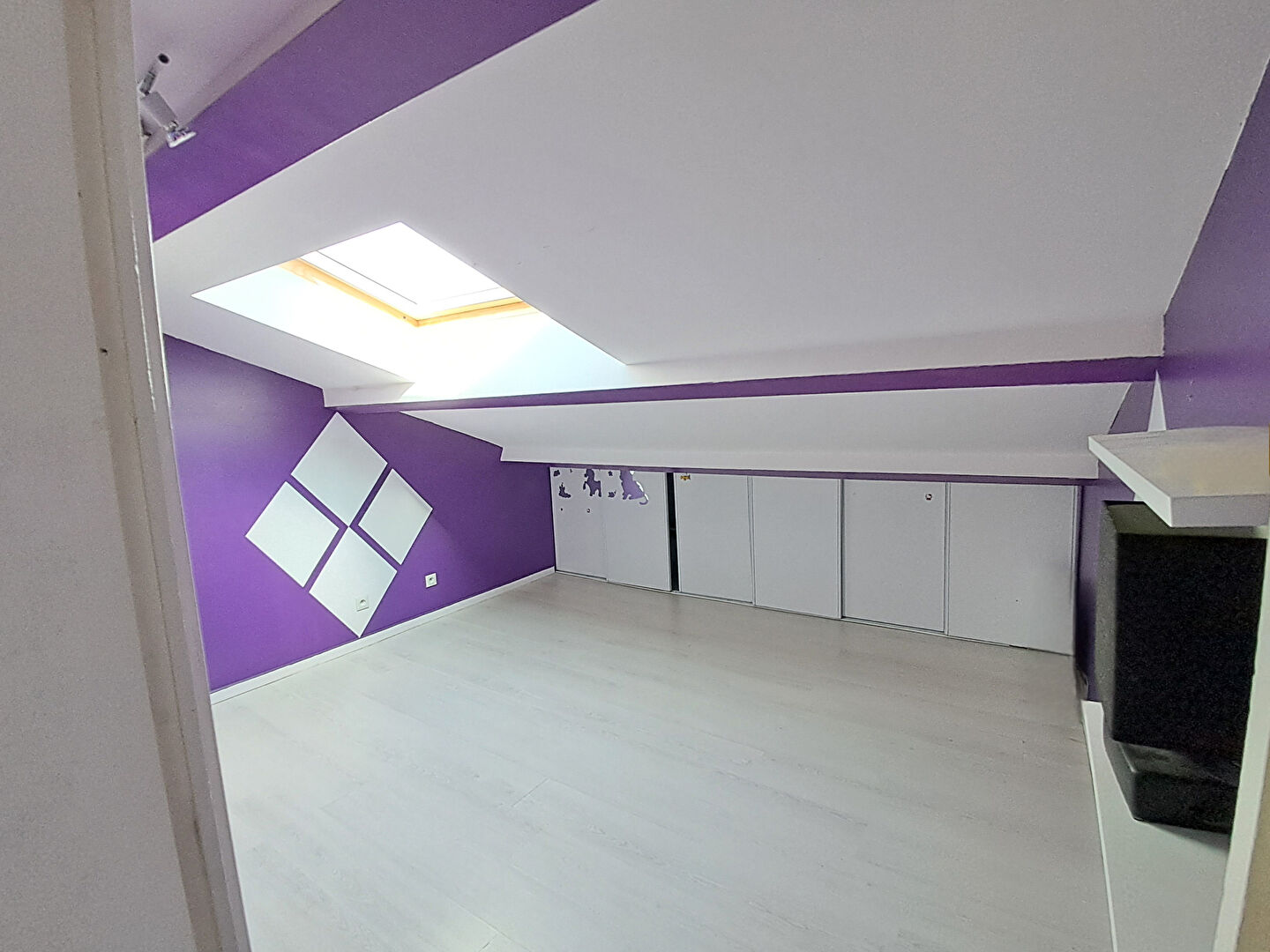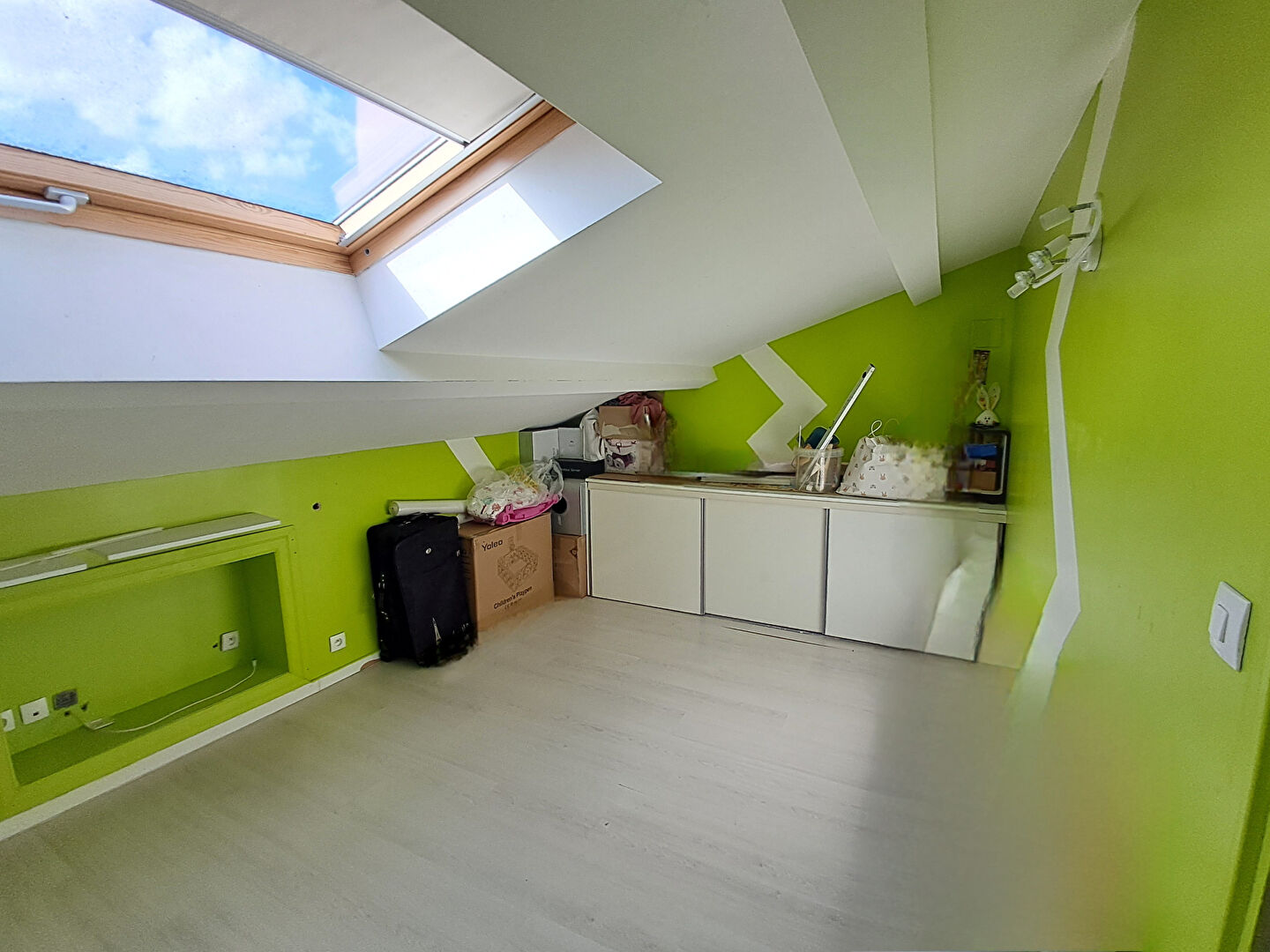 Le dernier étage accueille un espace nuit confortable avec trois grandes chambres mansardées, toutes dotées de rangements intégrés, et une pièce attenante prête à devenir une salle d'eau supplémentaire.
