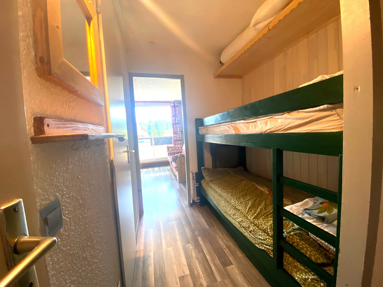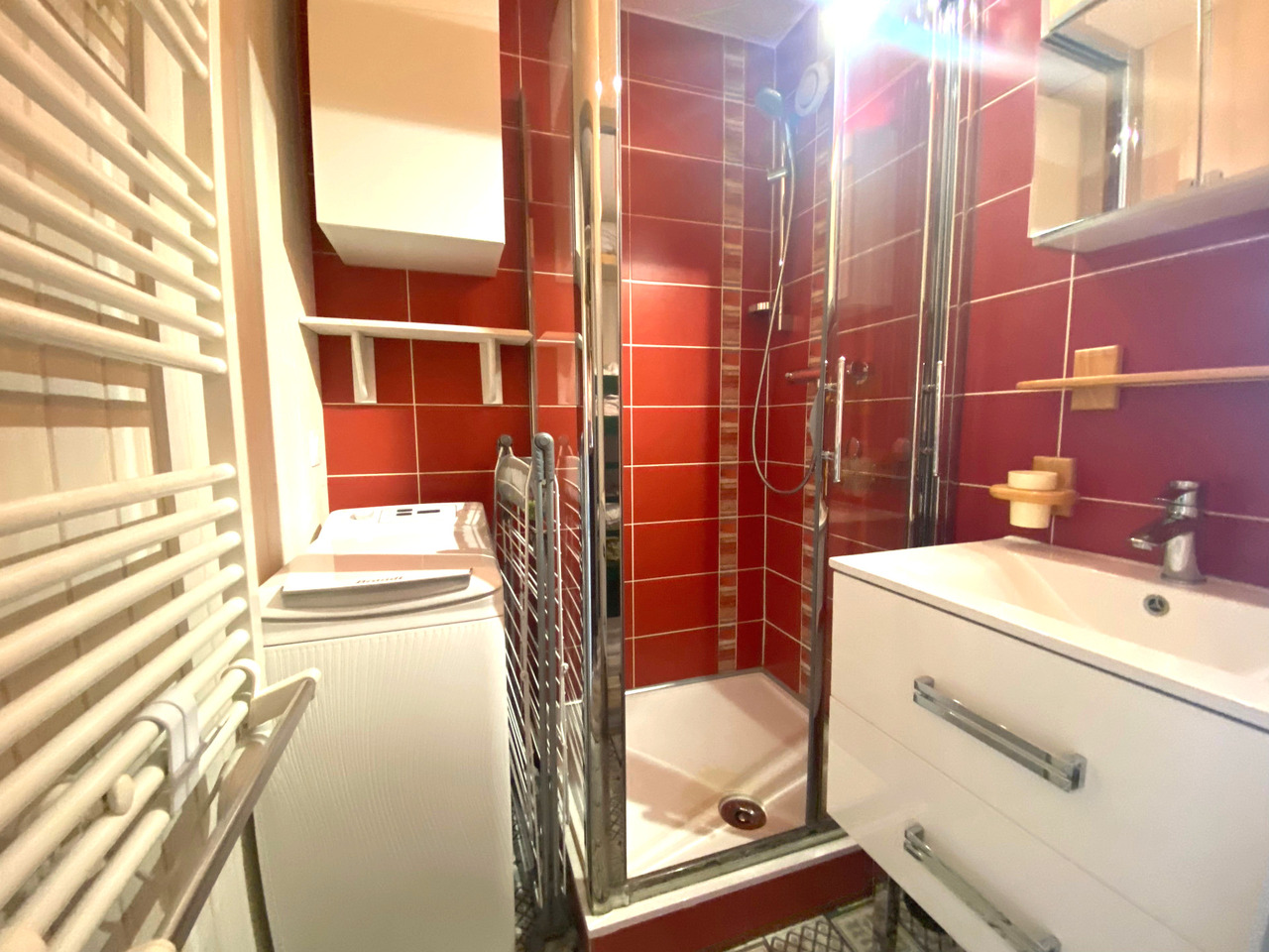 Cet appartement rénové est composé d'un coin montagne avec lit-superposé et placard, d'une salle d'eau rénovée avec douche et rangement, wc séparé,