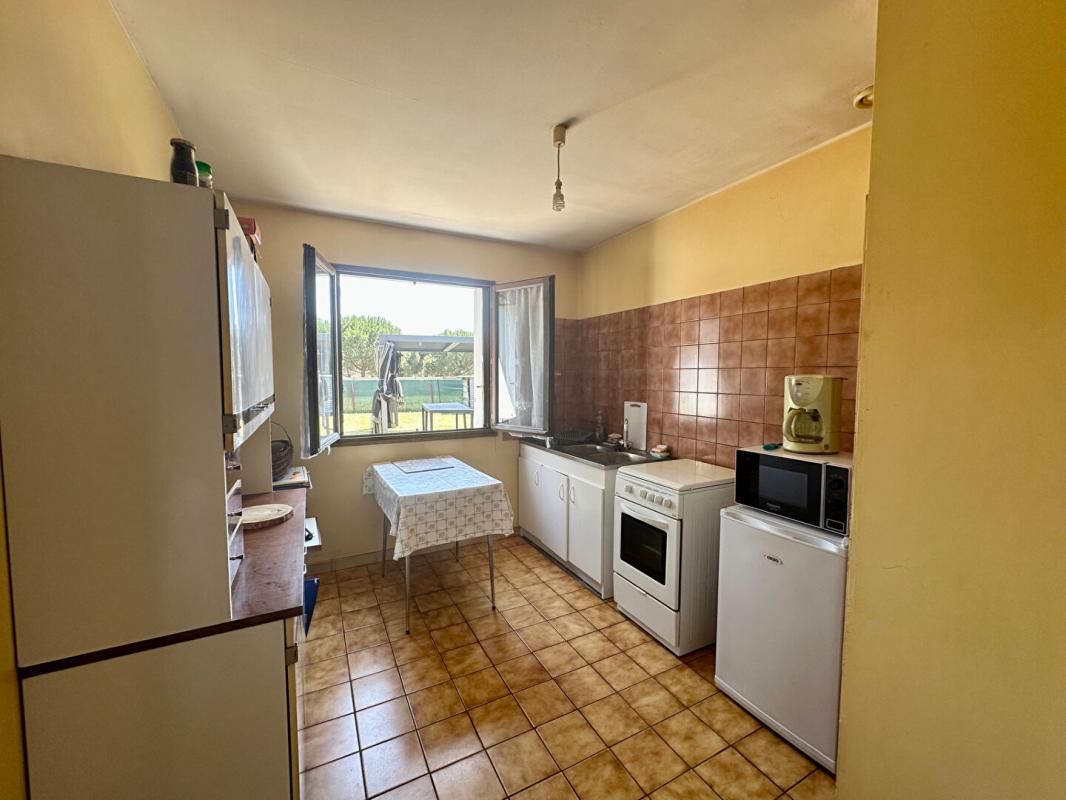 L'entrée mène à une pièce de vie lumineuse comprenant un salon et une salle à manger. Une cuisine indépendante offre un espace fonctionnelle.